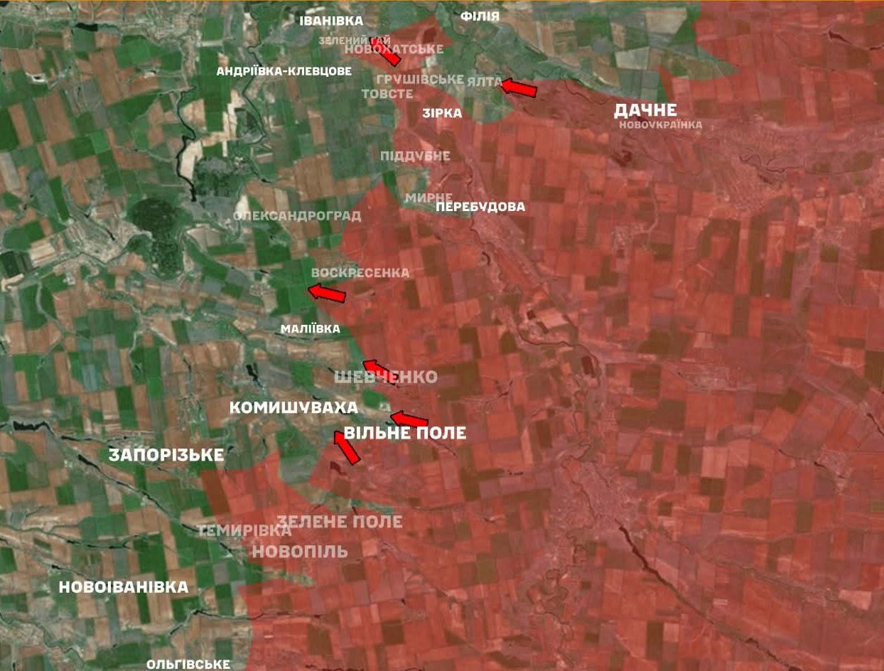 Генштаб ЗСУ підтвердив, що росіяни намагаються окупувати село Запорізьке. Однак українські військові зупинили їхнє просування та зберігають контроль над селом. Також у Генштабі повідомили, що біля села Новогеоргіївка тривають активні бойові дії, проте українські військові завдають росіянам суттєвих втрат, ліквідовуючи по кілька десятків окупантів щодня.