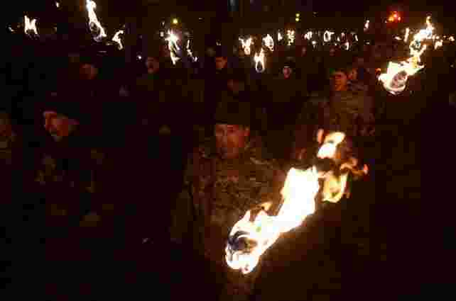 Серед охочих віддати шану полеглим під Крутами героям були і прості львів’яни, і представники громадських організацій, і добровольці, і навіть футбольні фанати. Усі разом вони зі смолоскипами в руках пройшлися маршем від пл. Ринок до пам'ятника Степанові Бандері.