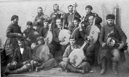 Гнат Хоткевич серед кобзарів на Археологічному зʼїзді в 1902 році (фото з Вікіпедії)