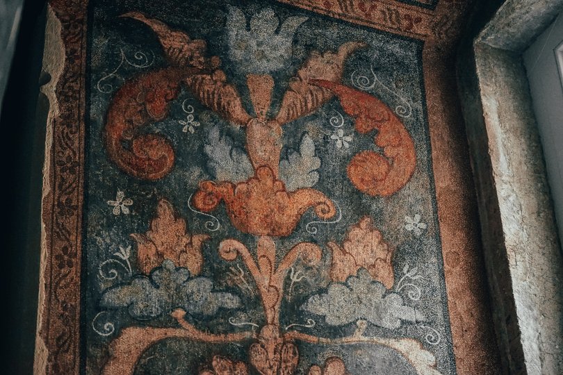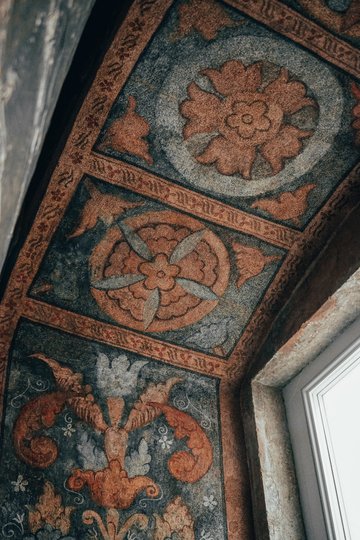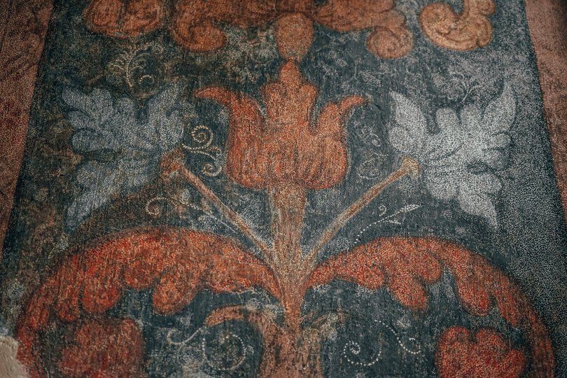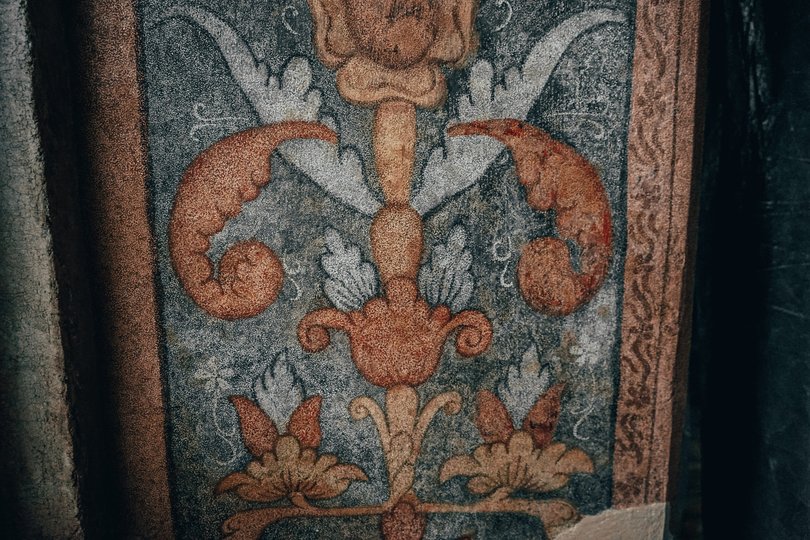 «За формою балок і збереженим стінописом можна досить точно визначити період будівництва кам’яниці. Балки виглядають оригінальними, а їхнє фарбування ідентичне тим пігментам, що використовувалися для настінних розписів. Це означає, що вони буквально з одного флакона», – пояснює художник-реставратор Андрій Почеква.