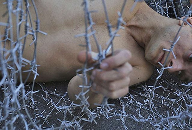 У травні 2013 року оголеного художника, обгорненого в колючий дріт, асистенти принесли до будівлі Законодавчого зібрання Санкт-Петербурга. Він лежав усередині колючого дроту, не звертаючи уваги на репліки перехожих. На дії поліціянтів, які розрізали дріт спеціальними ножицями, Павленський також не відреагував.