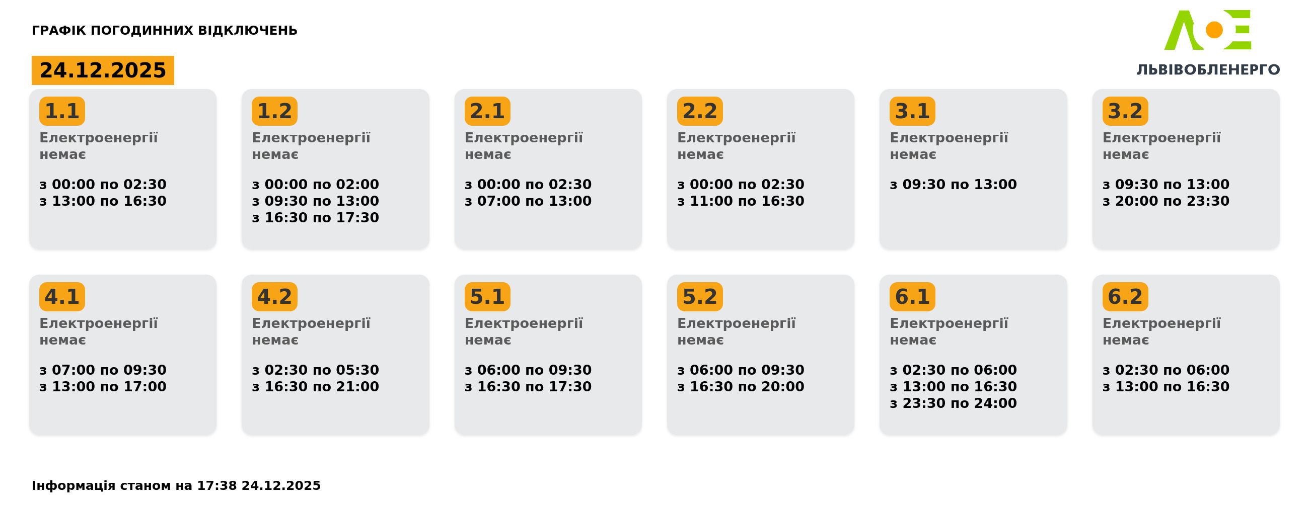 Актуальний графік відключень на 24 грудня