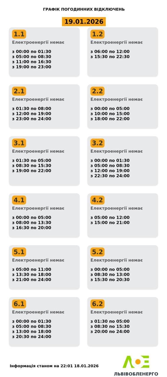 Актуальний графік відключень на 18 та 19 січня