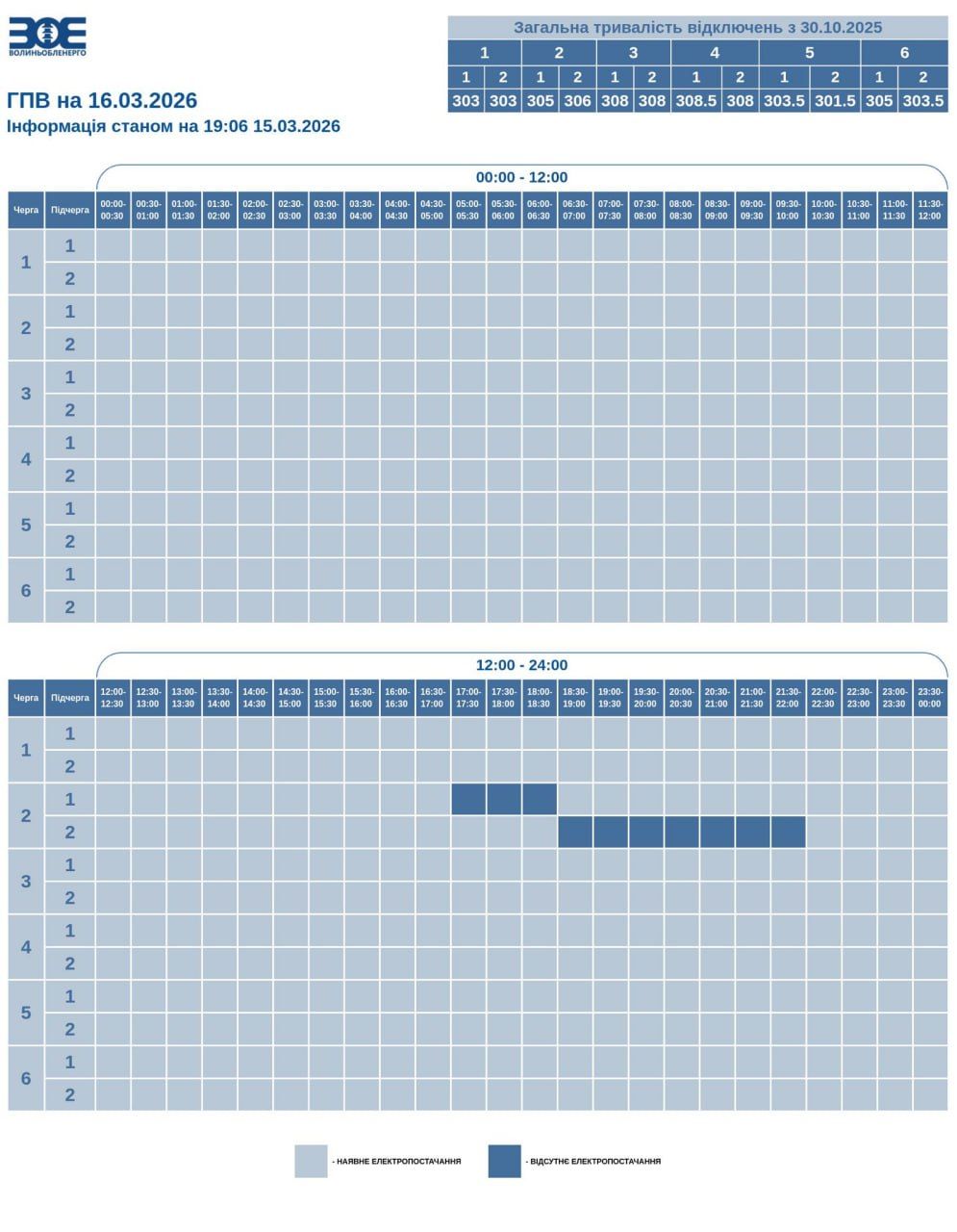 У разі змін інформацію щодо черг та підчерг споживачів електроенергії на Волині можна переглянути за посиланням.