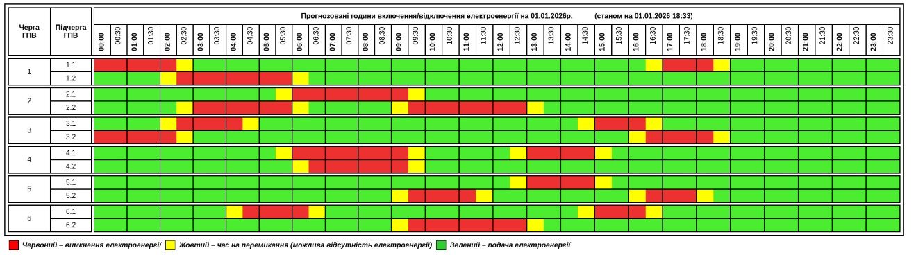 Графік погодинного відключення на 1 січня. Клікніть, щоб збільшити
