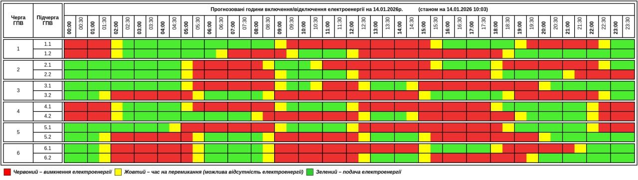Актуальний графік відключень на 14 січня. Клікніть, щоб збільшити