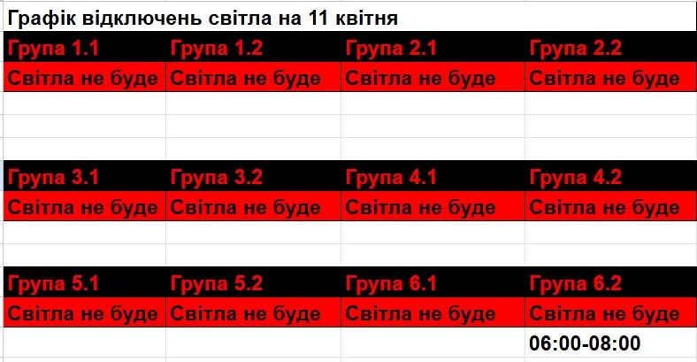 Графік відключень на 11 квітня. Клікніть для збільшення