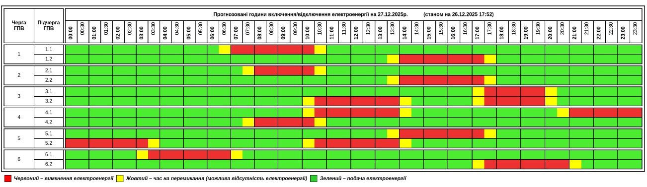 У суботу, 27 грудня, АТ «Тернопільобленерго» за вказівкою НЕК «Укренерго» запровадило графіки погодинних відключень.