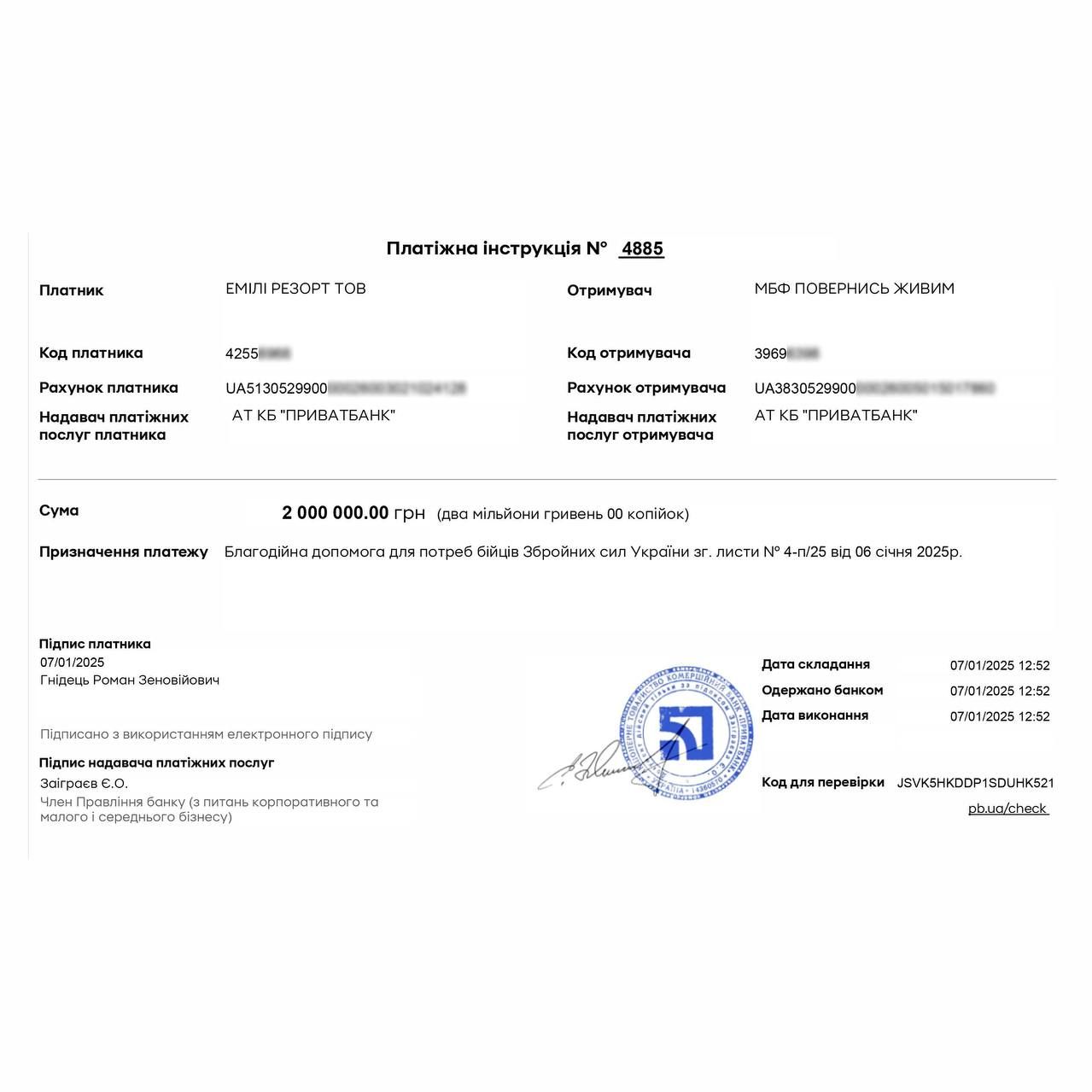 «У грудні ми вже перерахували 1 000 000 грн до Львівського обласного госпіталю ветеранів війни та репресованих імені Юрія Липи, а також 1 000 000 грн для Центру дитячої медицини (лікарня "Охматдит"). Але ми на цьому не зупиняємося. Поки наші хлопці захищають Україну, ми маємо можливість працювати й допомагати там, де це необхідно. Тому ми перерахували ще 2 000 000 грн до фонду «Повернись живим». Ми вдячні кожному, хто став на захист нашої країни. Разом до Перемоги! Слава Україні! Героям Слава!», – зазначив Григорій Козловський.