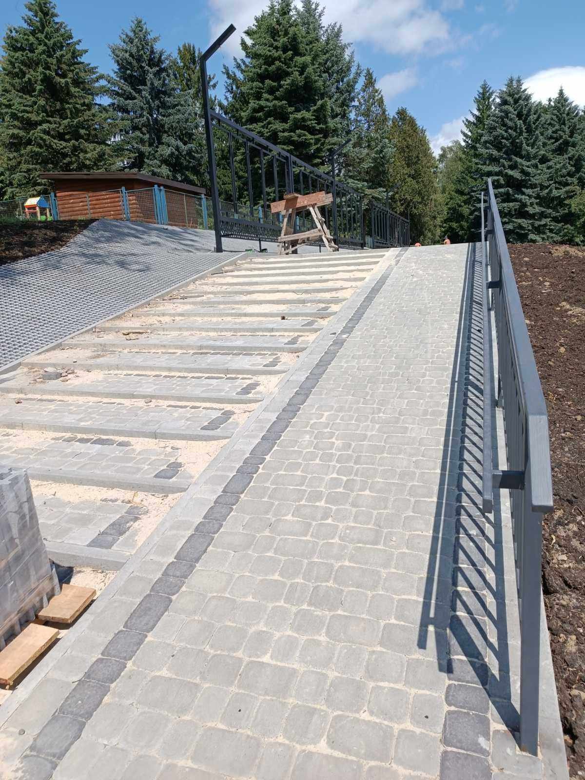 - Улаштування покриттів дрібнорозмірних фігурних елементів (бруківки – ред.);