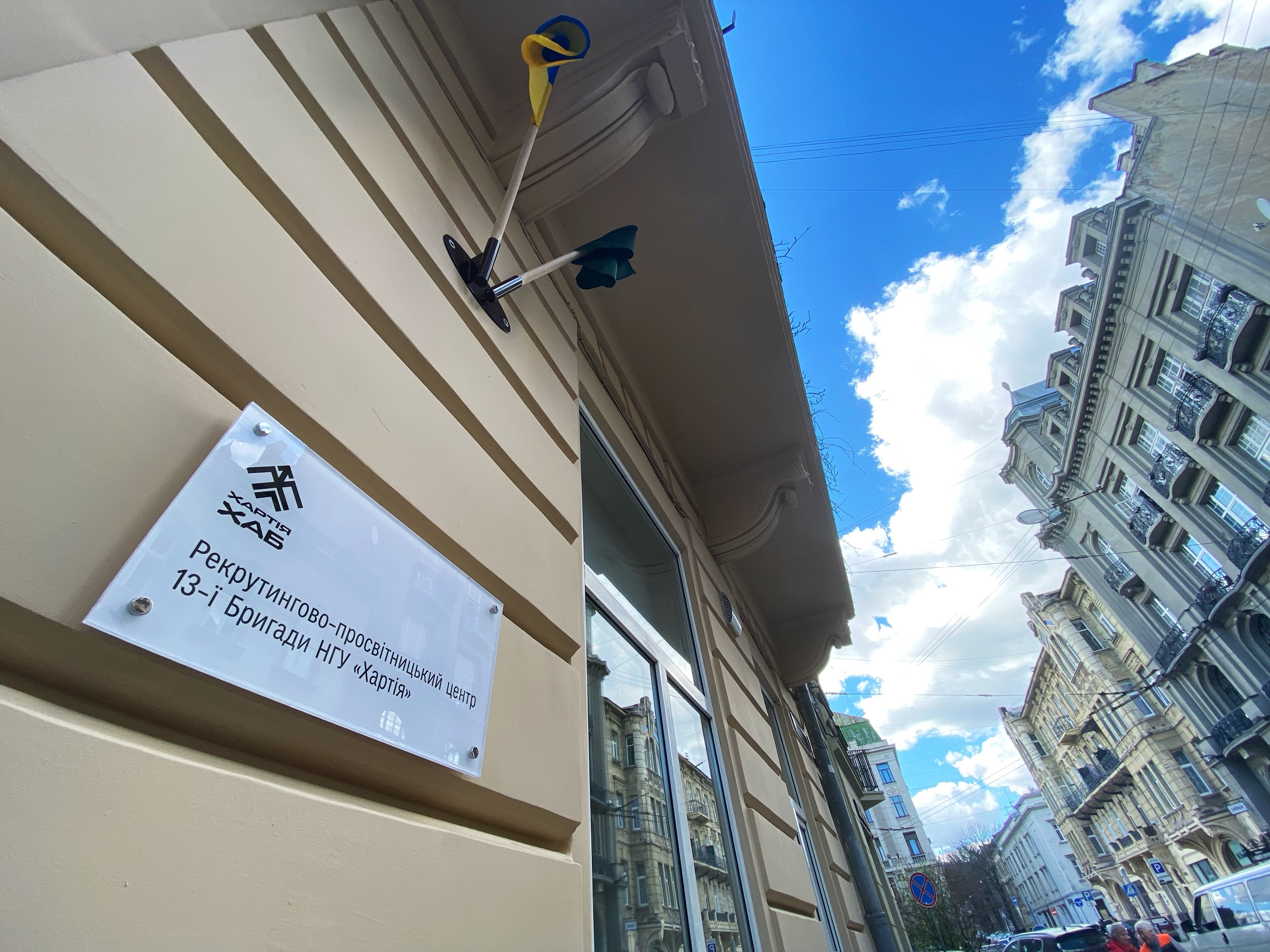 У Львові, у п'ятницю 4 квітня, відкрили хаб «Хартія» від 13-ї бригади оперативного призначення НГУ «Хартія». Він працюватиме як простір для військових та їхніх родин, майданчик для організації подій та рекрутинговий центр. Хаб розташований у центрі Львова на вулиці Академіка Гнатюка. Міський голова Андрій Садовий розповів, що це 16-й рекрутинговий центр у Львові.