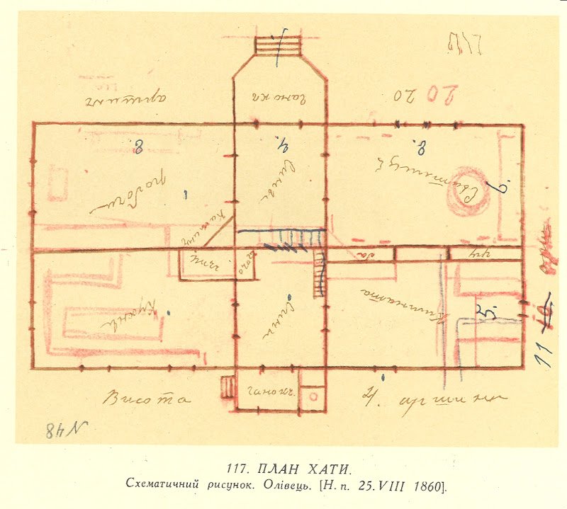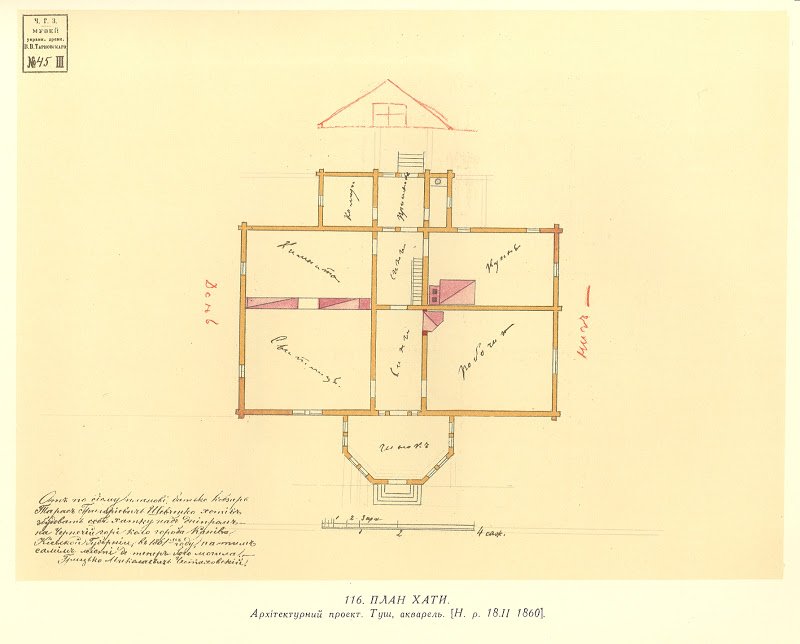 У березні 1860 року Тарас надумав спроєктувати хату. Архітектурне креслення мало чітке розпланування кімнат, вигляд головного і бічного фасаду, ґанку, покрівлі. Окрім традиційних світлиці, сіней, кухні і спальні, проєкт хати мав велику робочу кімнату з каміном.