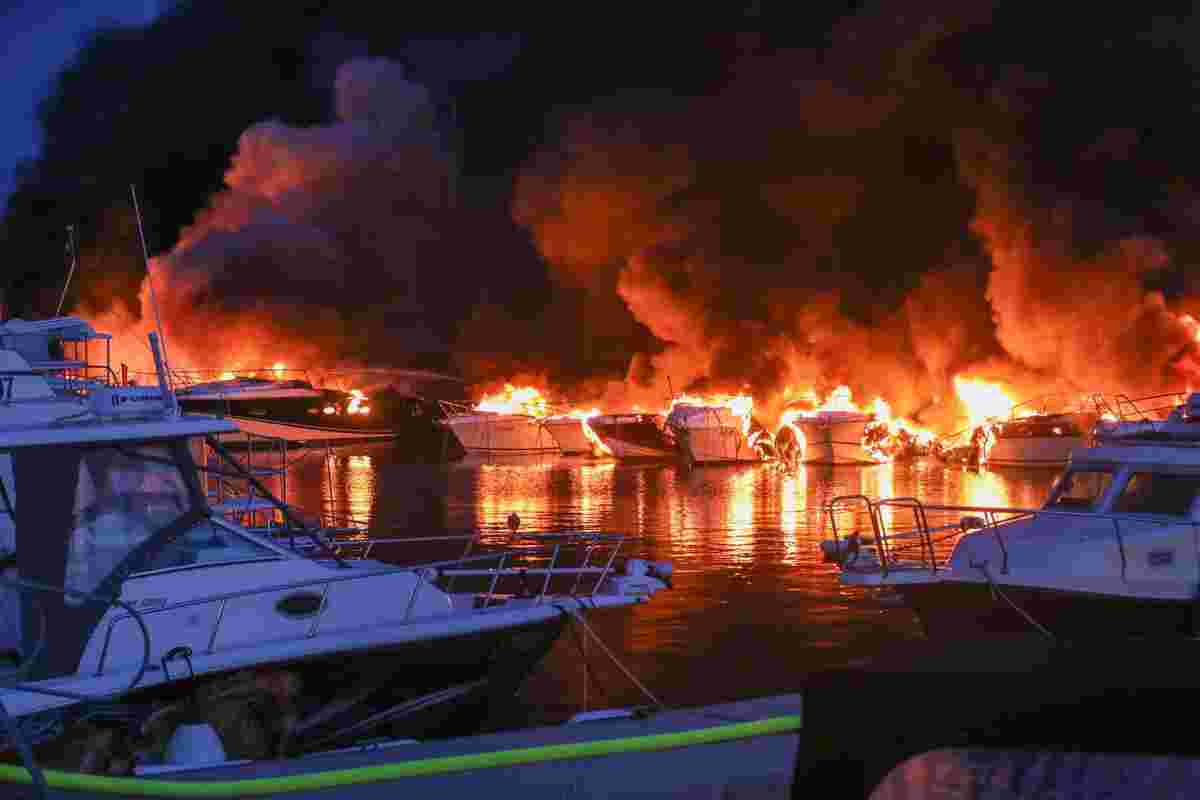 «Уночі, близько 3:40, поки двоє інших зловмисників були на варті, один із 25-річних хлопців прослизнув через огороджену частину пірса та попрямував до причалу. Далі підозрюваний кинув пляшку з легкозаймистою рідиною та спричинив пожежу, яка перекинулася на 34 пришвартовані судна, 22 з яких згоріли повністю, а інші були пошкоджені вогнем», – йдеться у заяві поліції.