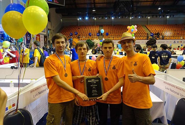 Студенти прикладної математики ЛНУ імені І.Франка отримали бронзу на чемпіонаті світу з програмування у Таїланді. Це найпрестижніші змагання з алгоритмічного програмування у світі, де за п'ять годин учасники повинні розв'язати понад 10 завдань з реального життя. Вони визначають місця найбільших покладів нафти, пишуть програми для прокладання найкоротшої дороги для екскурсії, вираховують кількість солодощів на день для людини з низьковуглеводною дієтою. У чемпіонаті беруть участь більше 13 тисяч команд.