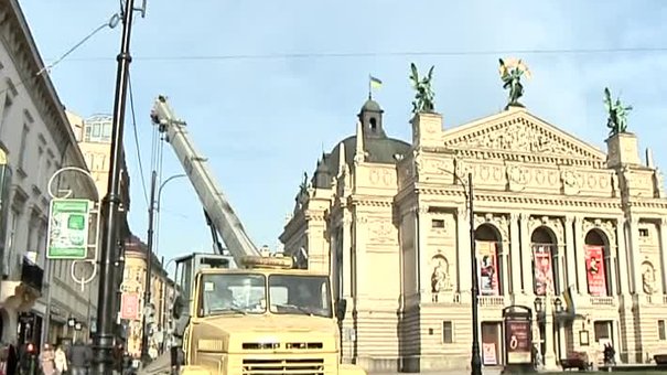Історичні ліхтарі на проспекті Свободи у Львові демонтують, аби забрати на реставрацію. 13 опор обіцяють повернути на місце після оновлення наприкінці 2015 року.