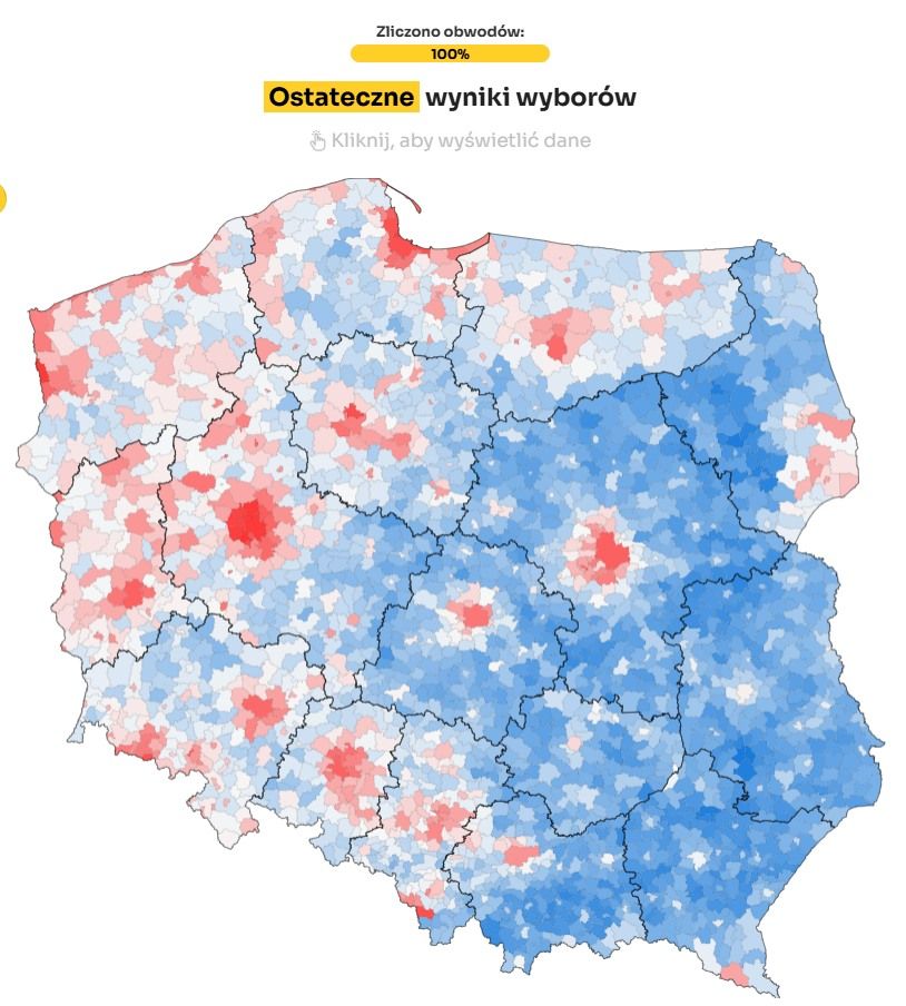 Попри неоднозначні висловлювання та обіцянки, кандидатуру Кароля Навроцького в другому турі виборів підтримали 50,89% виборців. Сайт Onet проаналізував, що найбільше політик отримав у східних регіонах Польщі, а також мешканці воєводств. Тоді як виборці з великих міст підтримали Рафала Тшасковського.