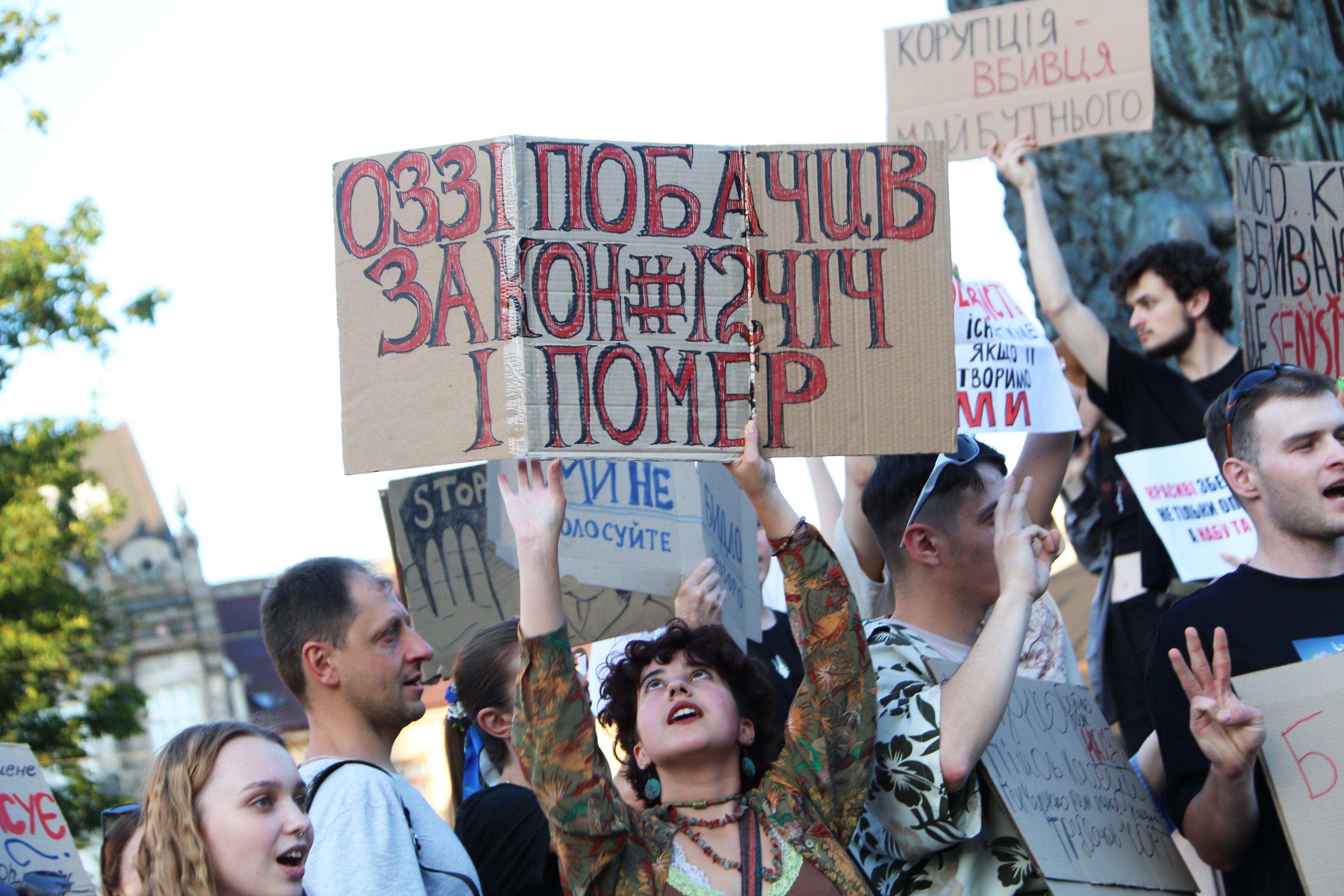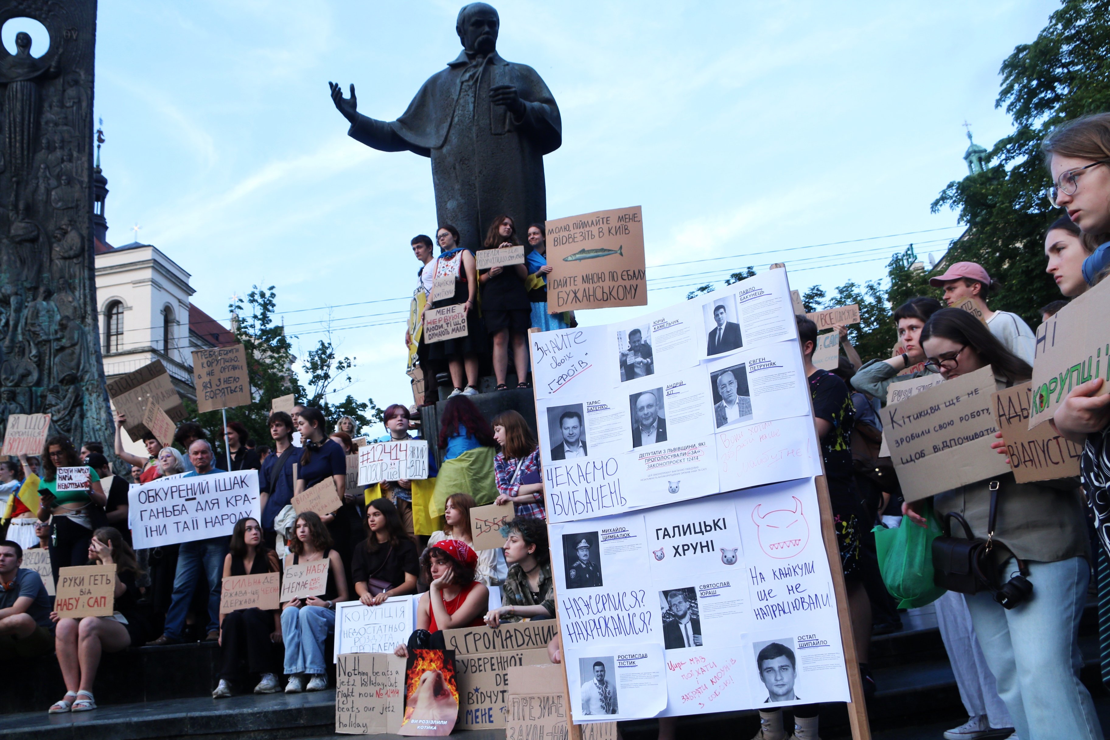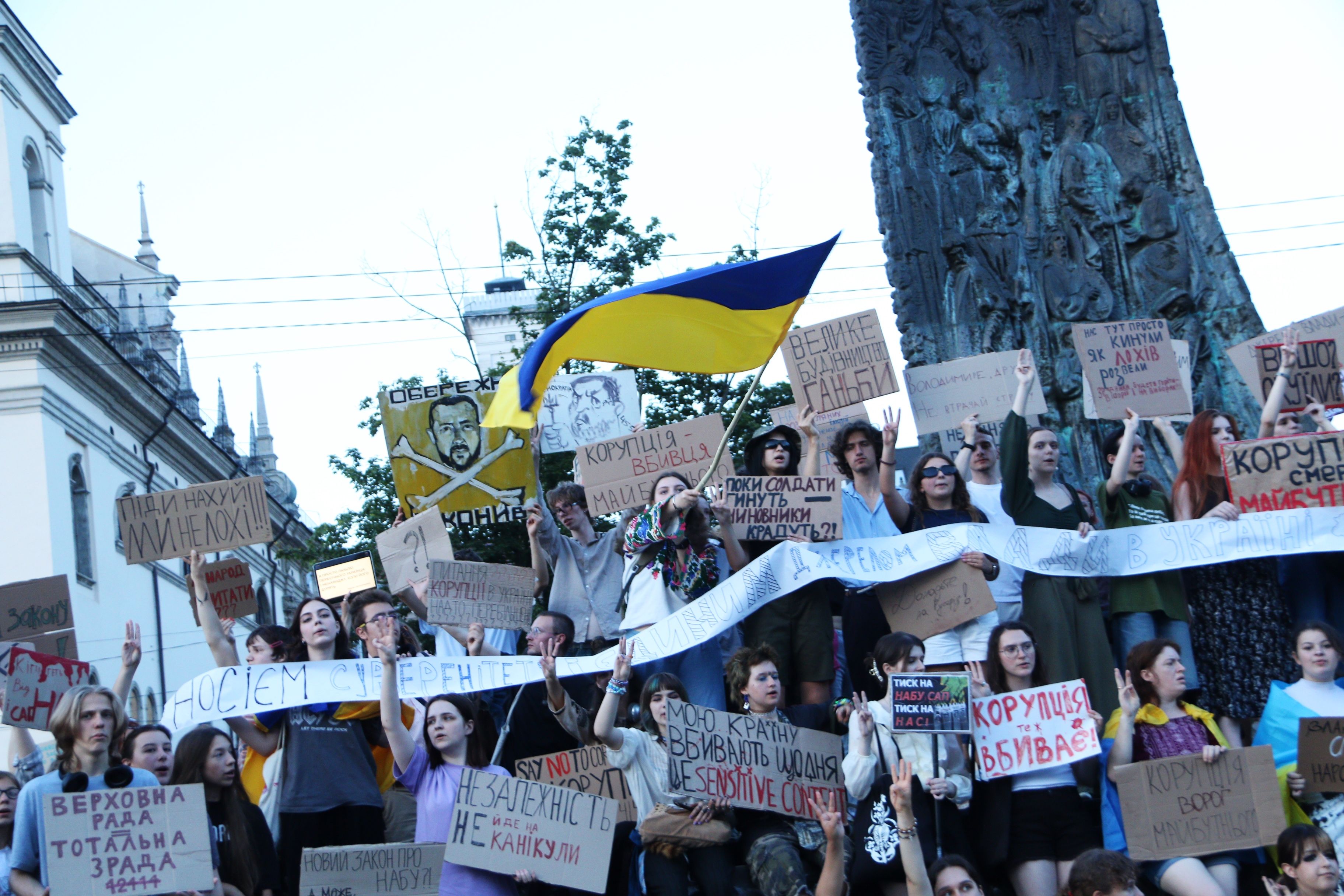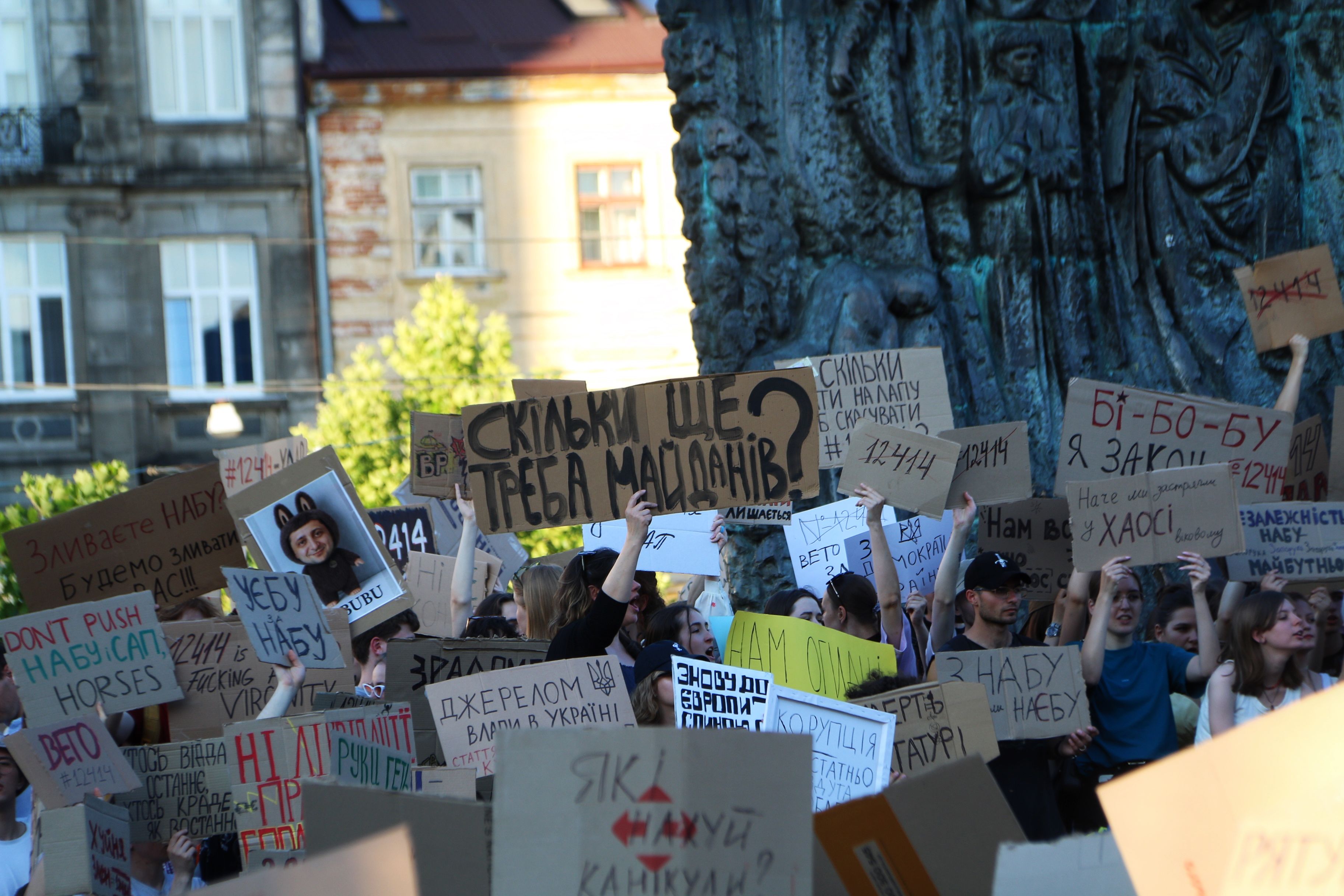Після скандального голосування українці вийшли на масштабні мітинги у різних містах. Одні з найбільших протестів відбулися у Львові. Найвпізнаванішим атрибутом протестувальників стали картонні плакати, на яких вони мемами, цитатами поетів та символами з попкультури звертаються до влади.