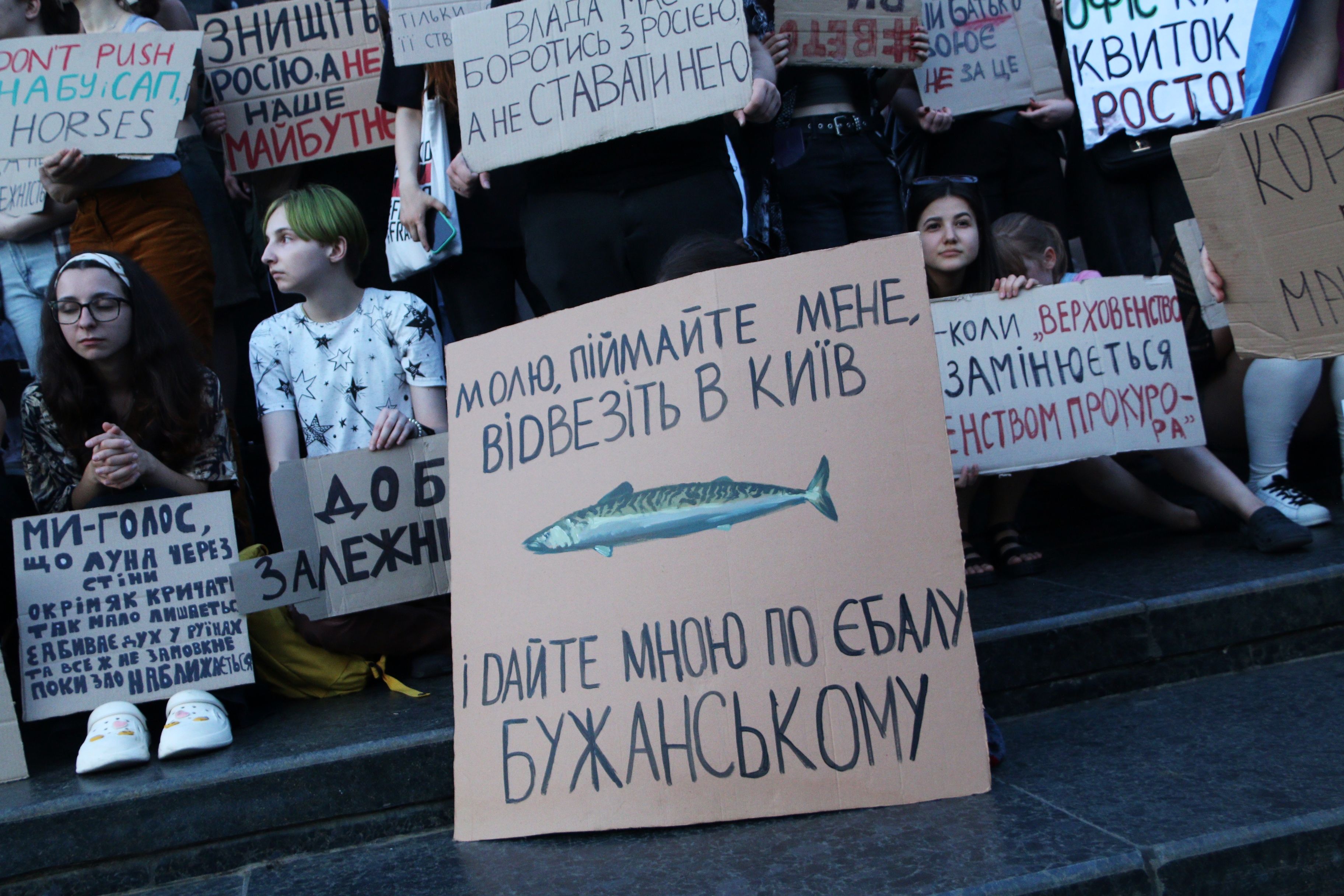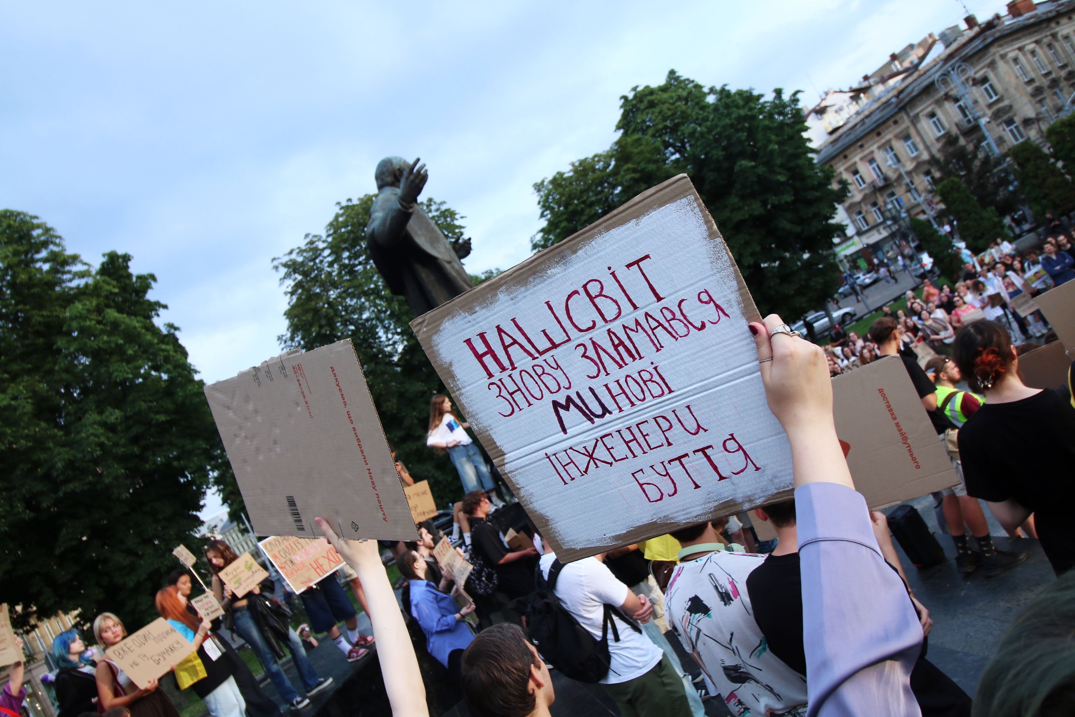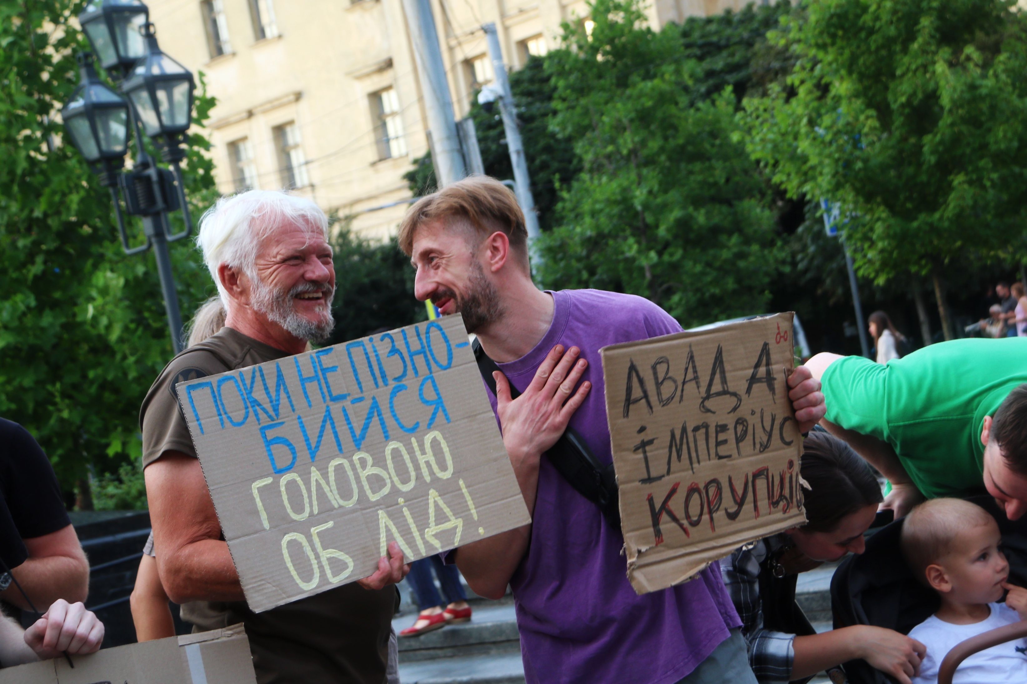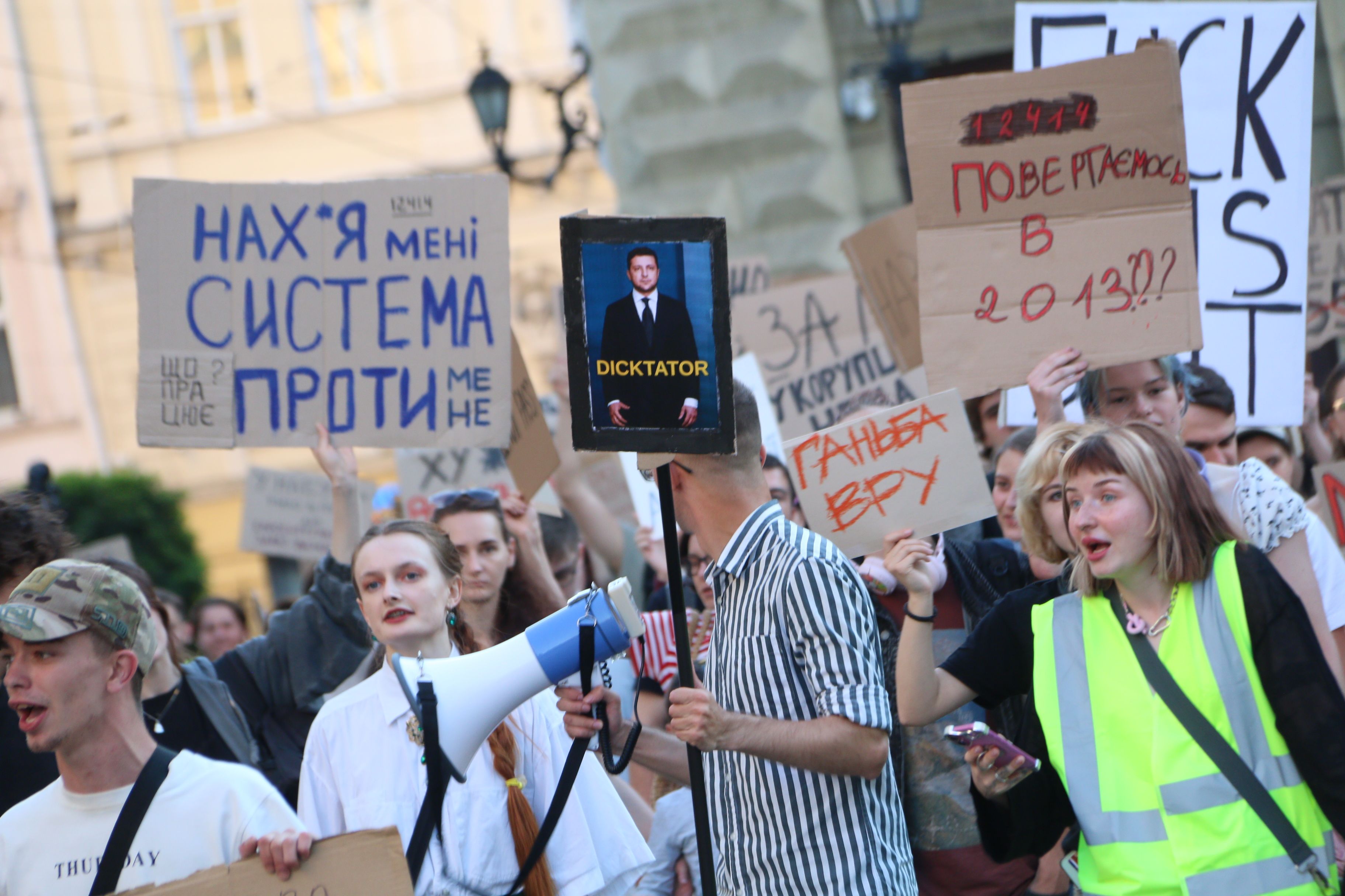 Після скандального голосування українці вийшли на масштабні мітинги у різних містах. Одні з найбільших протестів відбулися у Львові. Найвпізнаванішим атрибутом протестувальників стали картонні плакати, на яких вони мемами, цитатами поетів та символами з попкультури звертаються до влади.