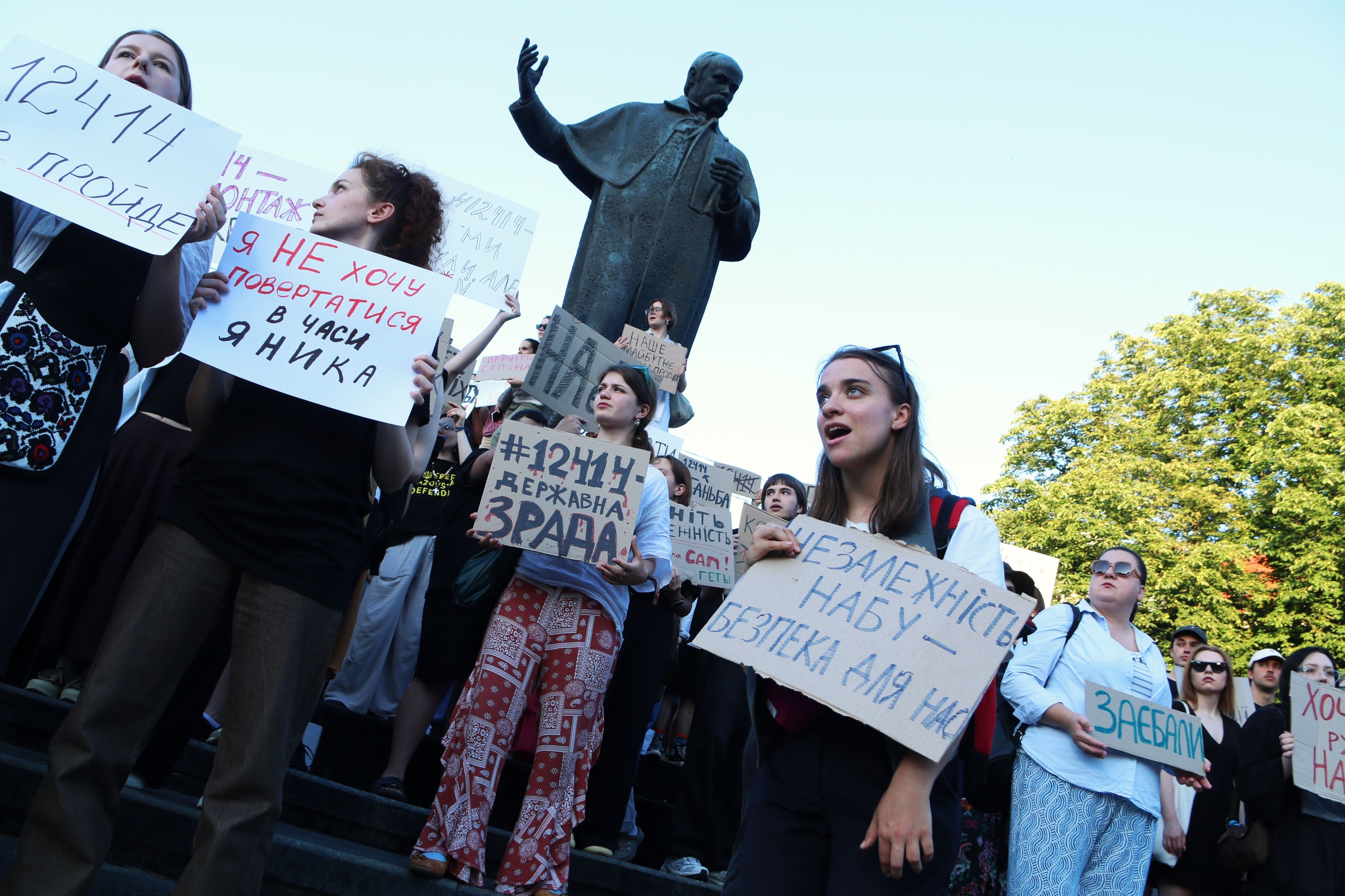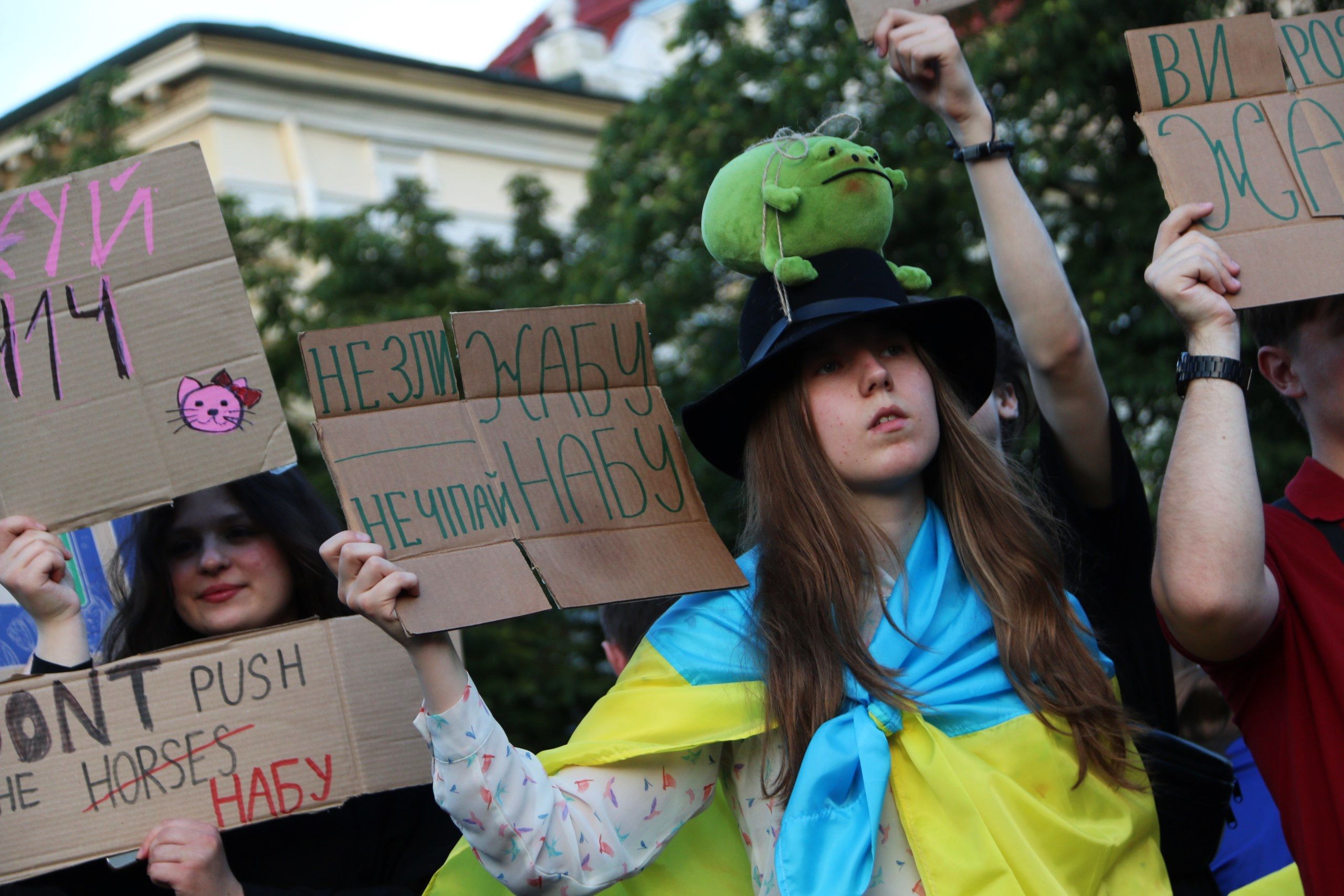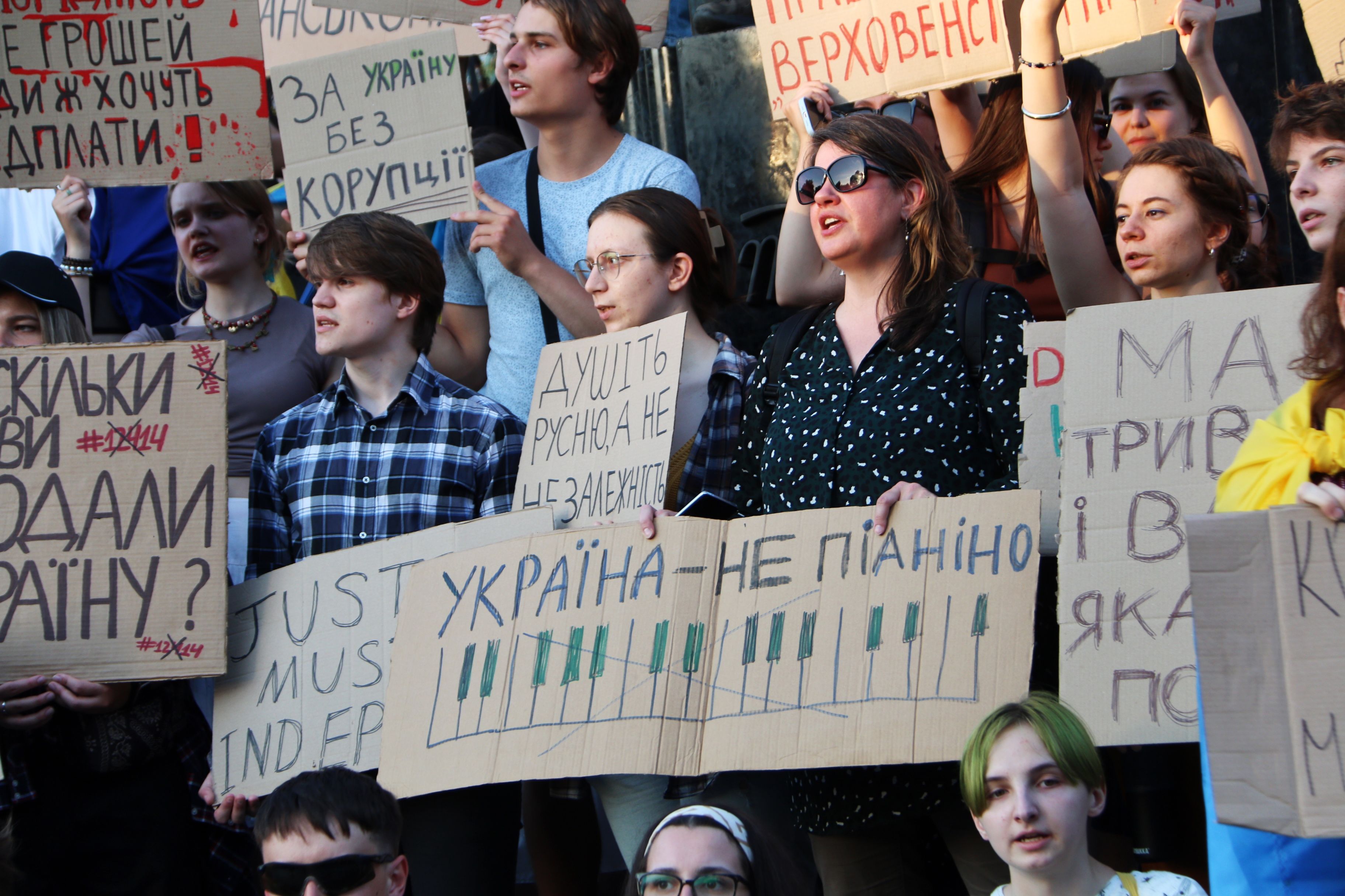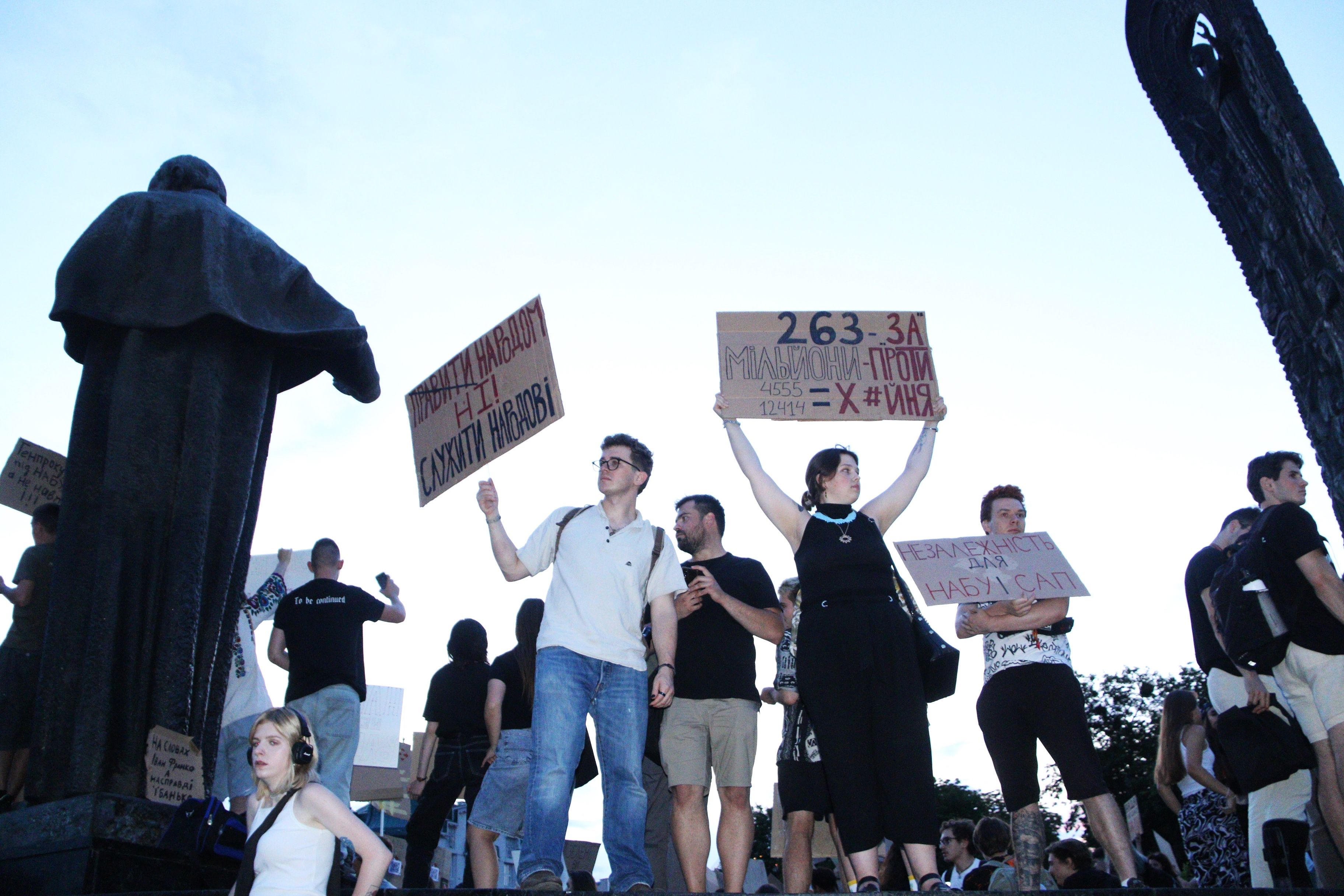 Після скандального голосування українці вийшли на масштабні мітинги у різних містах. Одні з найбільших протестів відбулися у Львові. Найвпізнаванішим атрибутом протестувальників стали картонні плакати, на яких вони мемами, цитатами поетів та символами з попкультури звертаються до влади.