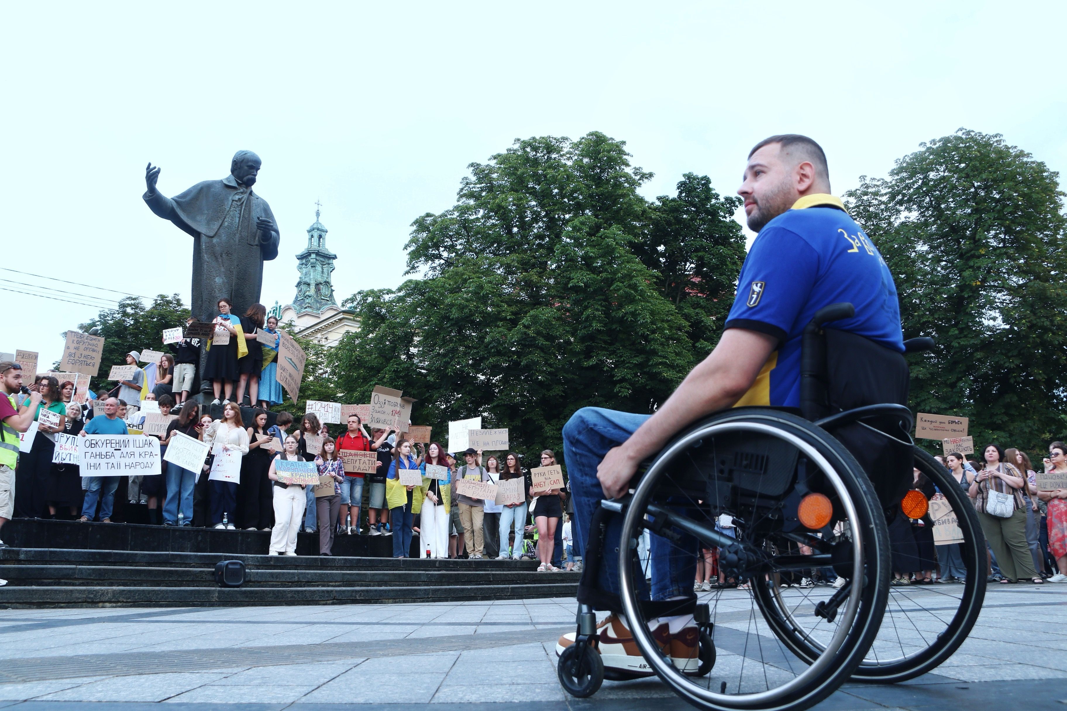 Ветеран під час акції протесту у п’ятницю, 25 липня 2025 року