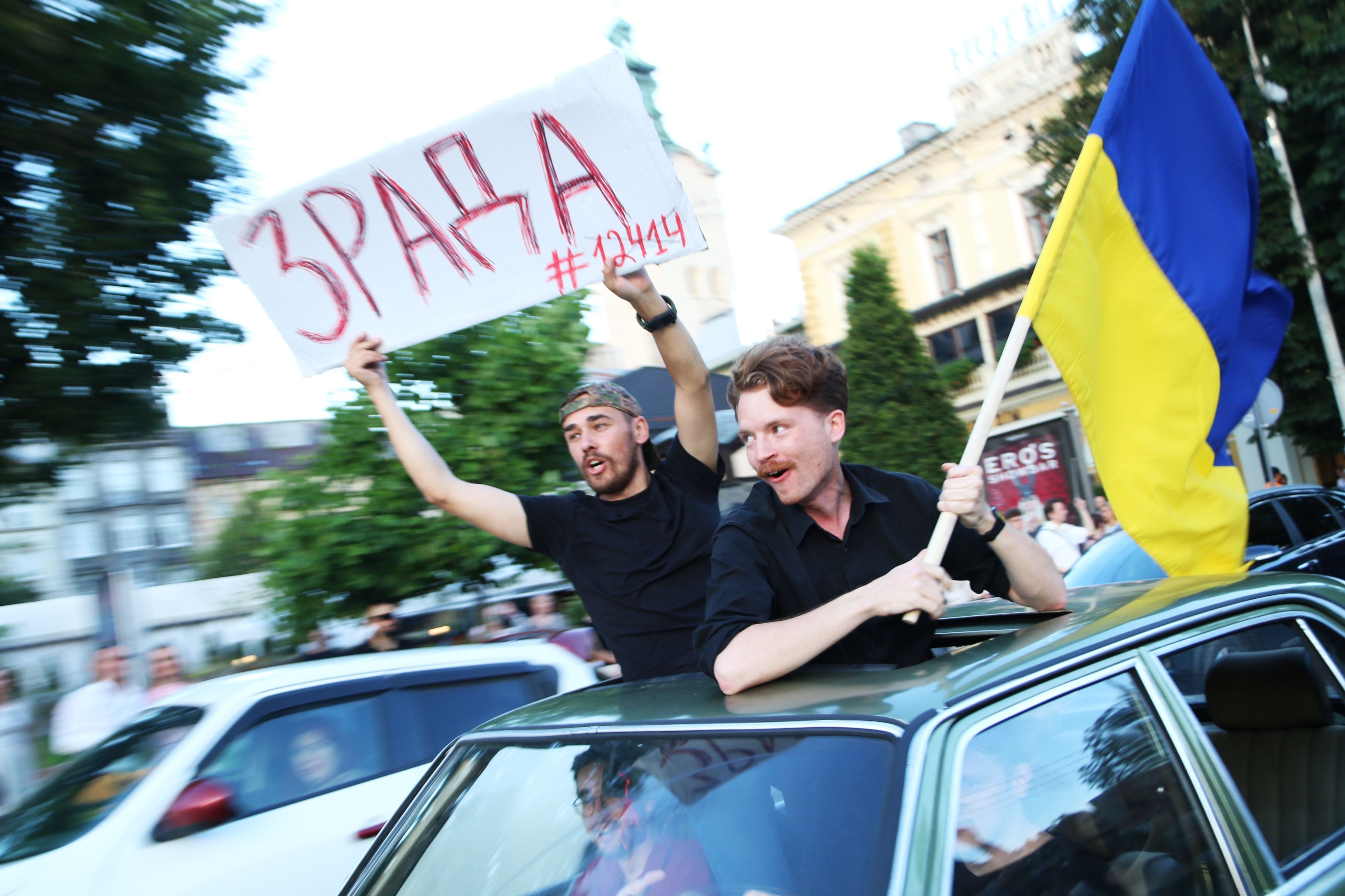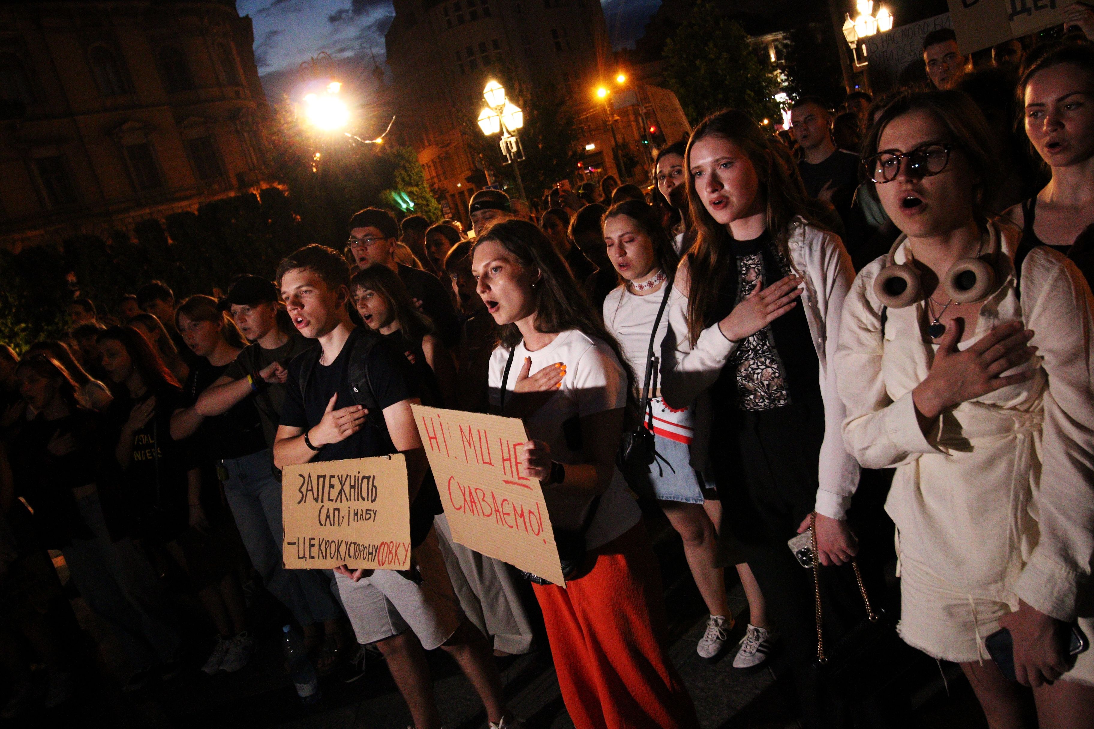 Львів’яни 24 липня співають гімн наприкінці акції протесту