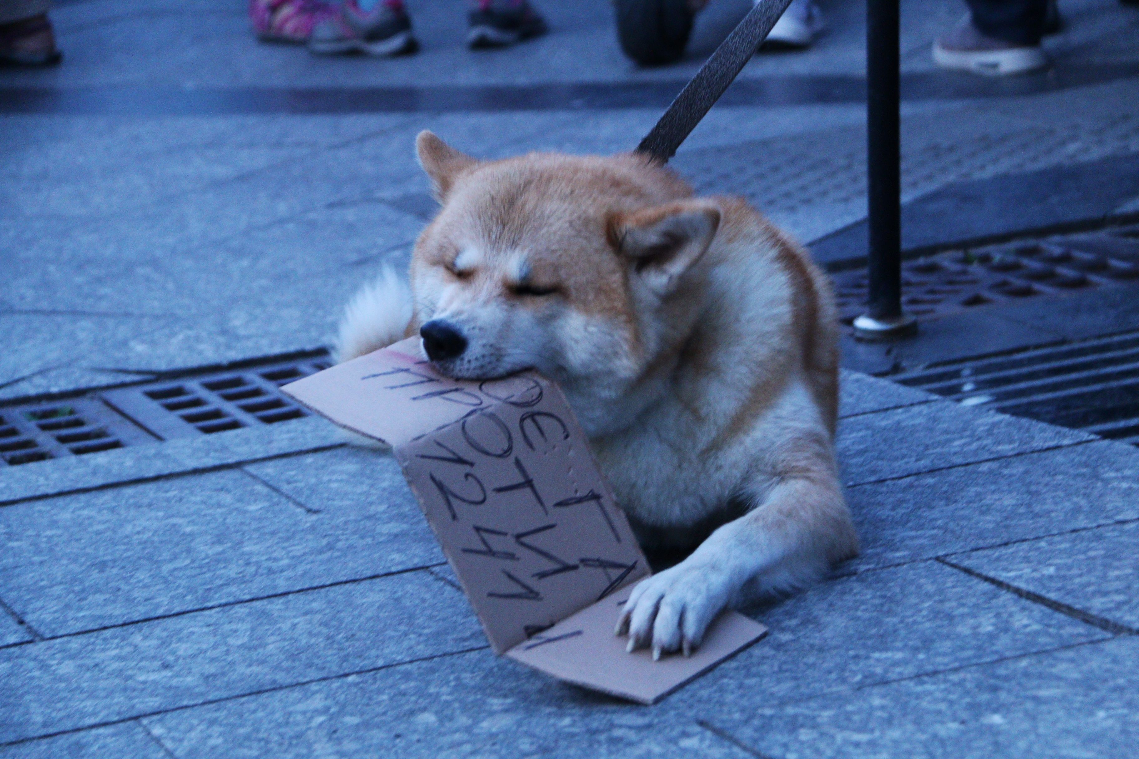 Львів'яни приходили на протест з домашніми улюбленцями. Пес тримає в зубах табличку з написом: «Моє гав проти 12414»