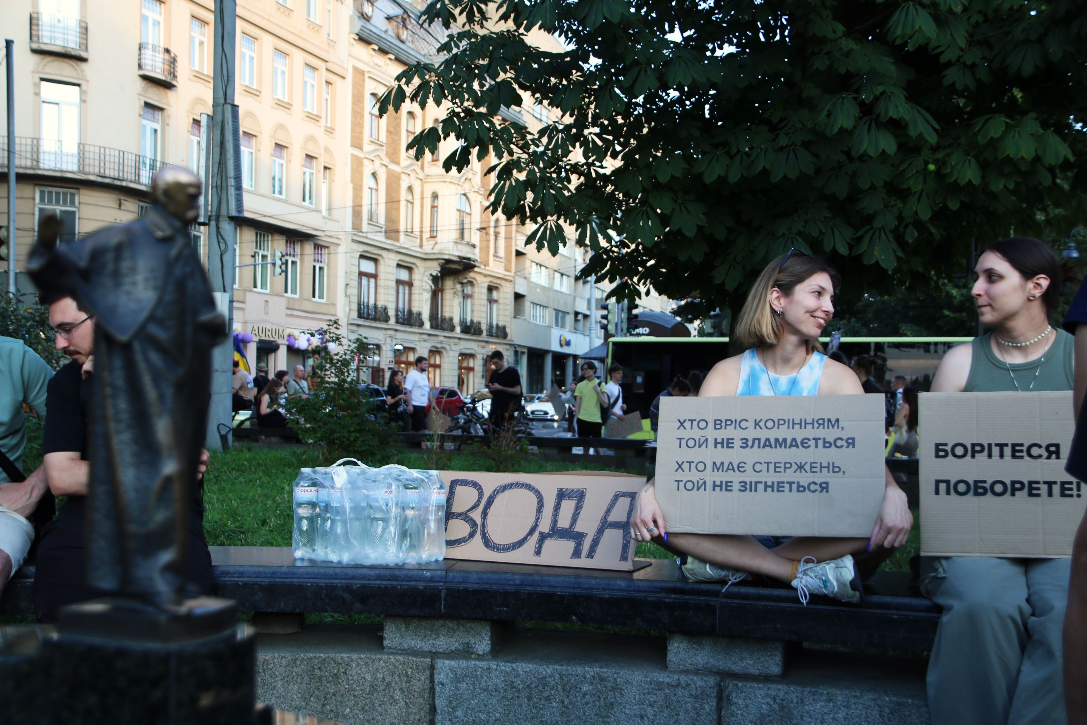 На акції протесту організовували пункти, де охочі могли взяти воду