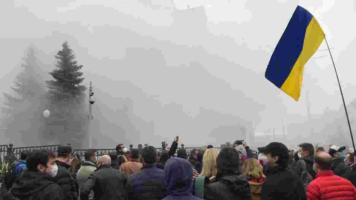 Як пише «Українська правда», група людей на чолі з колишнім народним депутатом Володимиром Парасюком закинула через паркан шини. Видання зазначає, що акція відбувається без сутичок.
