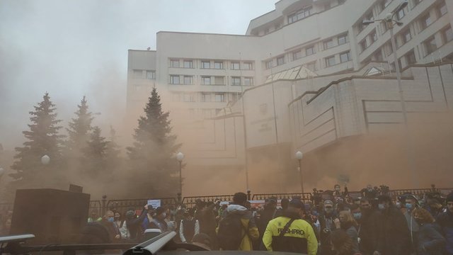 Під будівлею Конституційного суду, розташованого у Києві на вулиці Жулянська, кілька сотень людей протестують через рішення суду про скасування кримінальної відповідальності за недостовірне декларування. Протест має назву «Відправимо суддів-зрадників КСУ до Ростова», його організатори – «Центр протидії корупції», «Фундація ДЕЮРЕ», «Рух опору капітуляції» та «Євромайдан». Про це у п’ятницю, 30 жовтня, повідомило «Громадське».