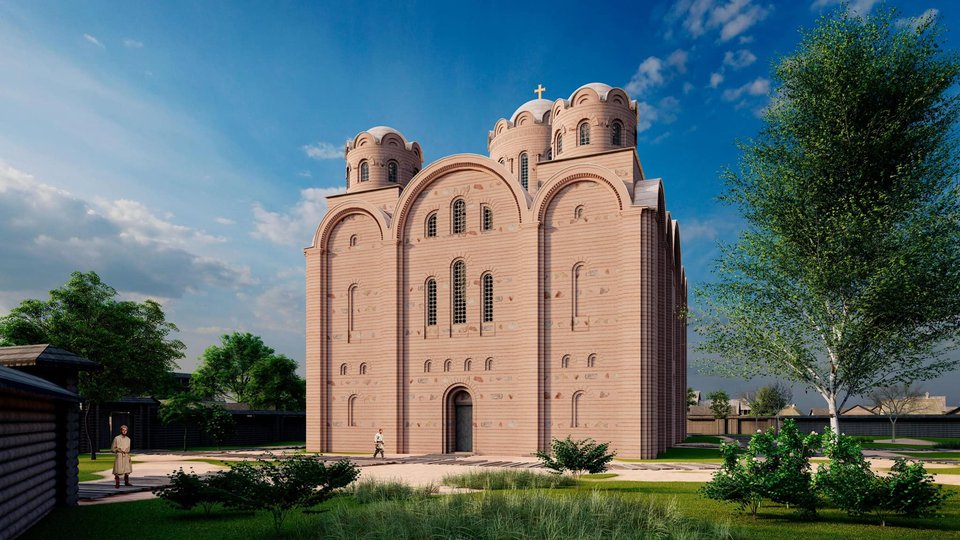 Відтворений гіпотетичний вигляд церкви Бориса і Гліба XII ст. у Вишгороді