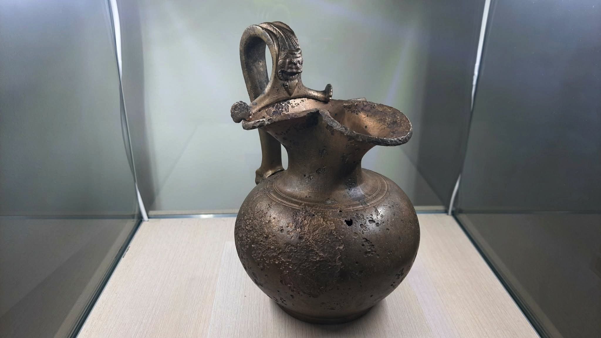 Ойнохоя розливання вина. Її знайшли в селі Чижиків біля Львова, коли копали силосну яму в колгоспі і випадково натрапили на поховання. Там ще була бронзова миска і шпори.