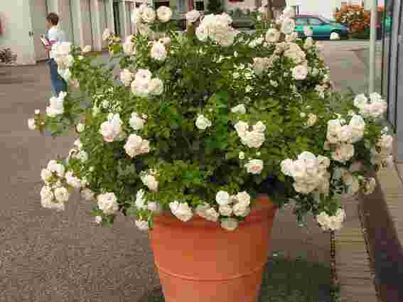 Рекомендується потримати троянду в нових умовах кілька днів, тоді можна пересадити куплену троянду в горщику. За цей час можна підібрати ємність. Краще використовувати керамічну чи пластикову. Діаметр вибирають на 5 см більше, ніж у старого горщика. Висота не особливо важлива, оскільки коріння розростається убік. Грунт готується з перегною (40%), дернової землі (40%), піску (20%). Дно ємності засипається двома-трьома сантиметровим шаром керамзиту.