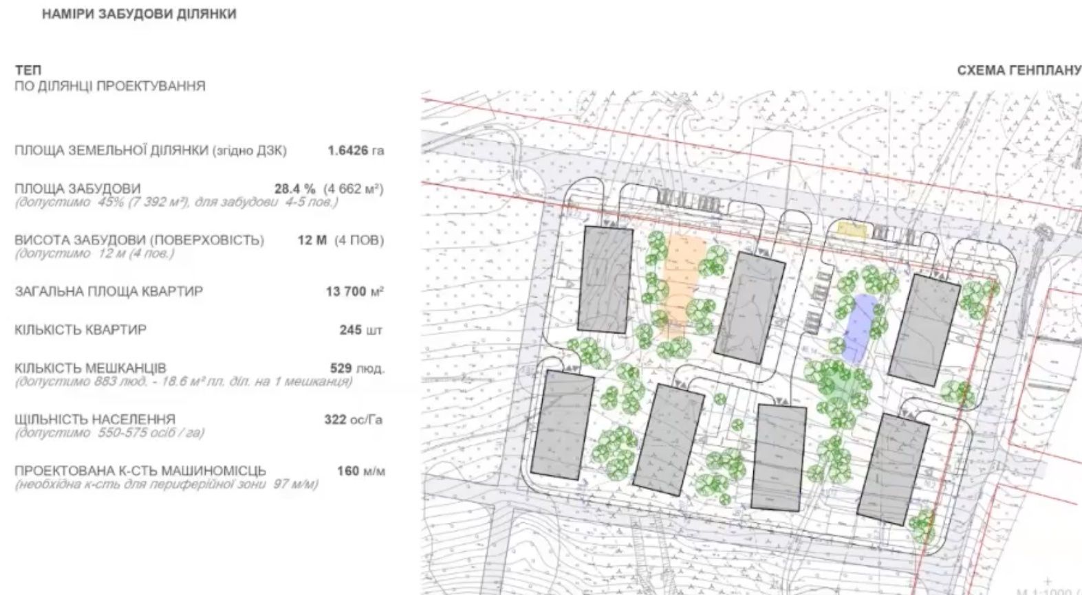 Зазначимо, що 3 жовтня на виконавчому комітеті Львівської міської ради представляли містобудівні умови на забудову ділянки, яка передана в оренду ПП «Еко Україна». Втім місто відмовило у видачі дозволів на будівництво житлового кварталу на 7 чотириповерхових будинків на 245 квартир і 160 паркомісць через невідповідність документів і недостовірні дані.