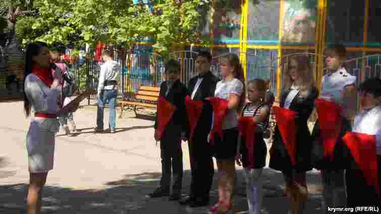 У Севастополі в четвер 19 травня урочисто прийняли в міську піонерську організацію школярів віком 7-10 років. Захід пройшов у Дитячому парку, біля пам'ятника Володі Ульянову, повідомляє кореспондент Крим.Реалії.