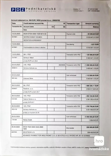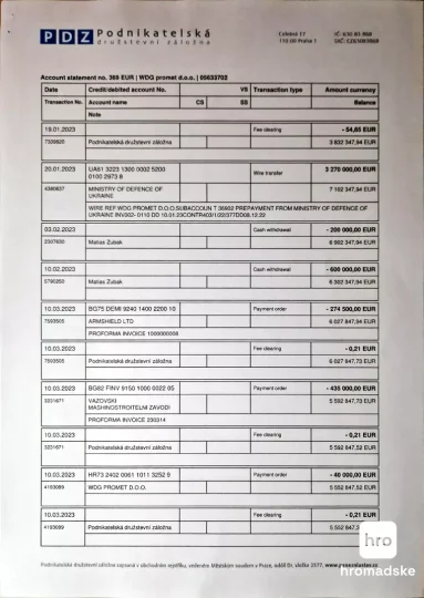 У грудні 2022 року компанія WDG також мала провальний контракт із Міноборони на постачання до України 30 тисяч танкових пострілів калібру 125 мм за 32,5 млн євро. Снаряди, як і міни, до України не потрапили. Згідно з випискою щодо руху коштів WDG, від грошей за снаряди майже нічого не залишилося. До слова, рахунок журналісти отримали не з банку, а в чеській кредитній спілці PDZ.