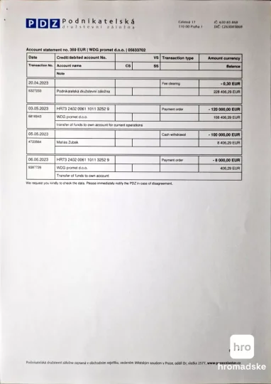 «Натомість Зубаки значну частину коштів зняли готівкою, а 5,5 млн євро сплатили за купівлю заводу Vitezit у містечку Вітез у Боснії і Герцеговині. Це підтверджується виписками про рух коштів на рахунку WDG promet, до яких отримали доступ журналісти. Жодних інших доходів, крім платежів по контрактах від України, у WDG promet не було», – повідомило hromadske.