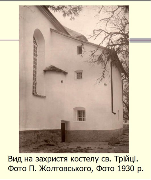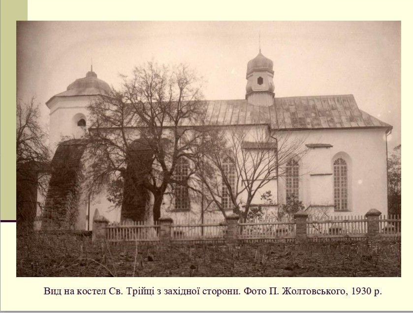 «Час будівництва костелу точно невідомий. Ймовірно, в 1450-х роках біля замку для вірян, які прибули зі зруйнованого міста Рів (Бар), та місцевого католицького населення збудували костел Св. Трійці. У візитації костелу 1830 року вказано, що Андрій Одровонж збудував костел у 1450 році», – розповів молодший науковий співробітник заповідника Руслан Нагнибіда.