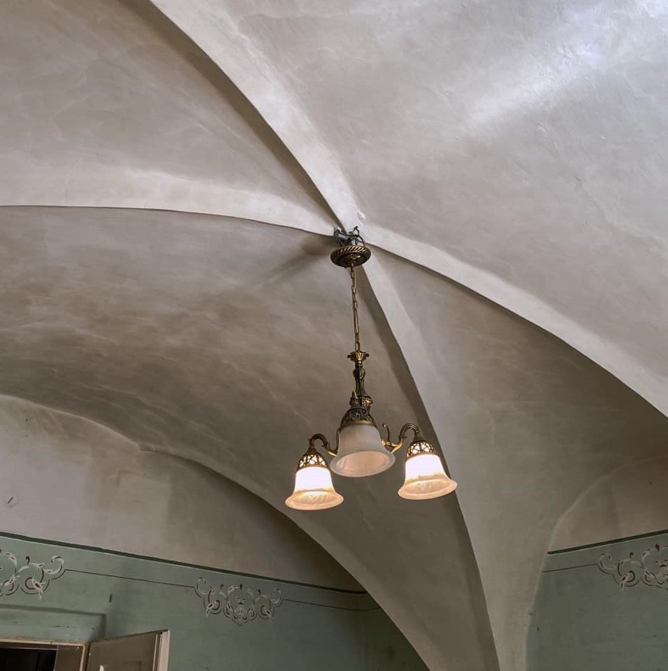 Найбільш вражає кімната зі склепіннями. Вона зберегла найстаріші елементи і вікнами виглядає на Успенську церкву. На ренесансних склепіннях XVII ст. відкрили вже пізніші, неоготичні розети (квітковий розпис, яким оздоблювали стелі), під ними є ще давніші. Листковий орнамент на стінах йшов по периметру кімнати, але збережена лише його частина в ніші. Остання епоха замалювала стіни всіх кімнат на зелено.