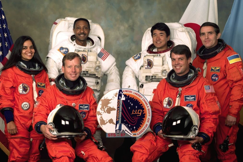 19 листопада 1997 року здійснилась мрія життя Леоніда Каденюка – він разом із чотирма американцями та японцем здійснив космічний політ на американському БТКК «Колумбія» місії STS-87. Завдяки Каденюку в космосі вперше розгорнули державний прапор України, герб і прозвучав український гімн. Космонавт взяв у космос «Кобзар» Тараса Шевченка, портрет видатного вченого Сергія Корольова та фото свого друга Леоніда Іванова, який загинув так і не побувавши в космосі.