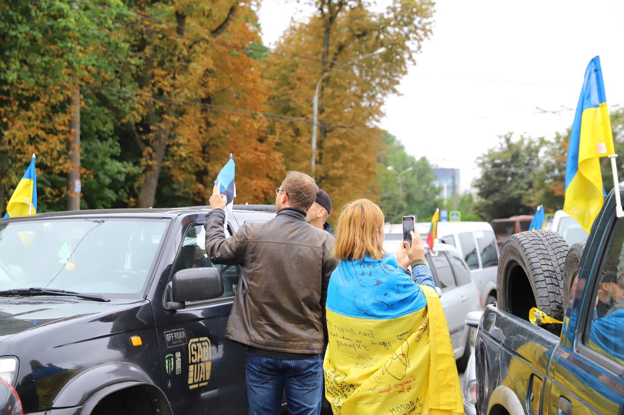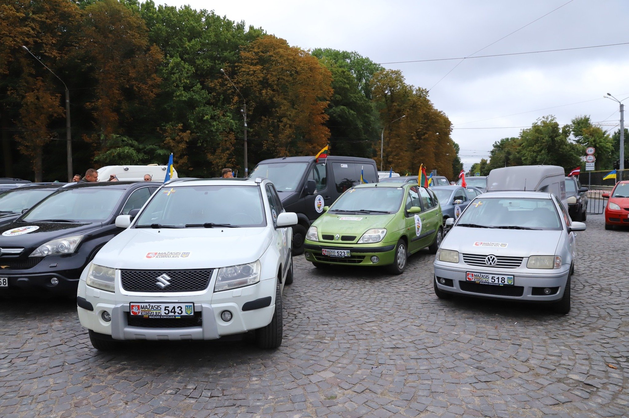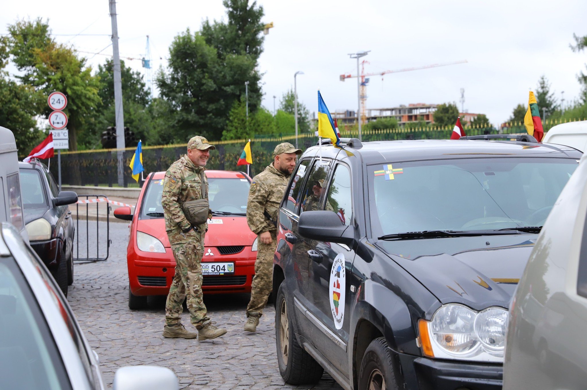 Волонтери з Балтійських країн у День Незалежності прибули до Львова щоб передати для українських військових понад 80 автомобілів.