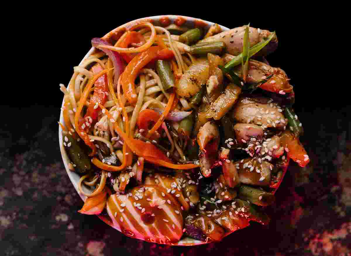 Удон з овочами та куркою – це смачна страва японського походження, яка поєднує в собі м’яку пшеничну локшину, ніжне куряче філе та різноманітні овочі. Це ідеальний вибір для швидкого та поживного обіду чи вечері, оскільки готується швидко, але виходить дуже смачно. Страва має насичений смак завдяки соєвому соусу та іншим ароматним приправам.