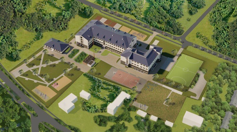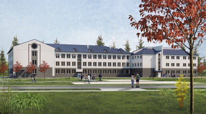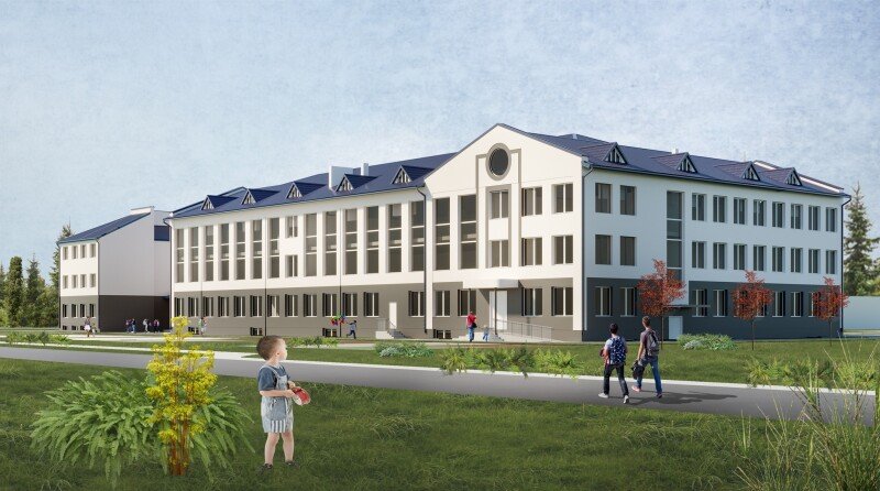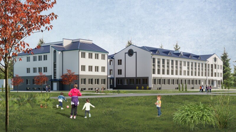 - добудову триповерхової будівлі з підвальним поверхом (укриттям). Перехід від існуючої частини школи дo добудови передбачено по всіх поверхах. Там навчатимуться діти 1-4 класів. Приміщення розраховане на 442 учні.