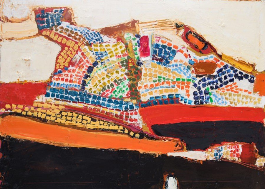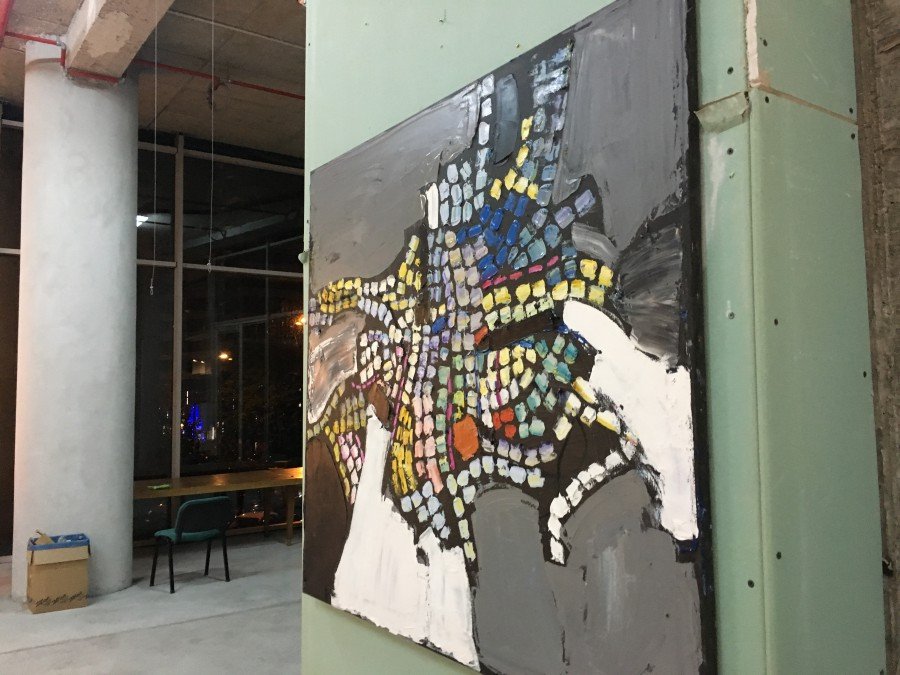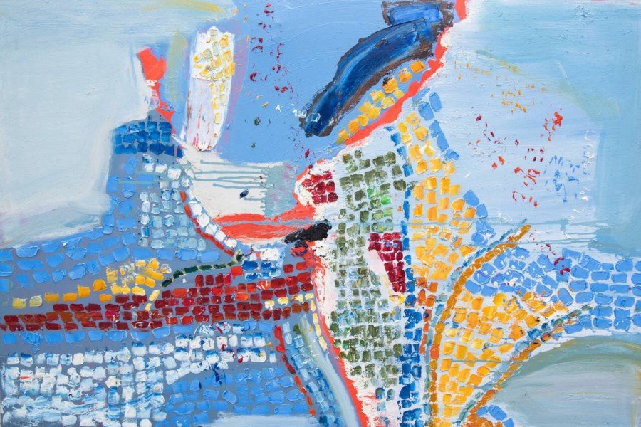 Вся експозиція була поділена на два крила. Серія «Причетність» є трансформацією стародавніх мозаїк, які я перетворюю у сучасні абстрактні композиції. Серія «Стрічки» – це про українську традицію вішати стрічки на щастя. Обидві ці серії, хоч і є абстракціями, проте вони мають для мене національний, етнічний характер. Можливо тому, що ця національна ідентичність є для мене дуже важливою та дає мені неймовірний імпульс, який я іноді не можу сама для себе пояснити.