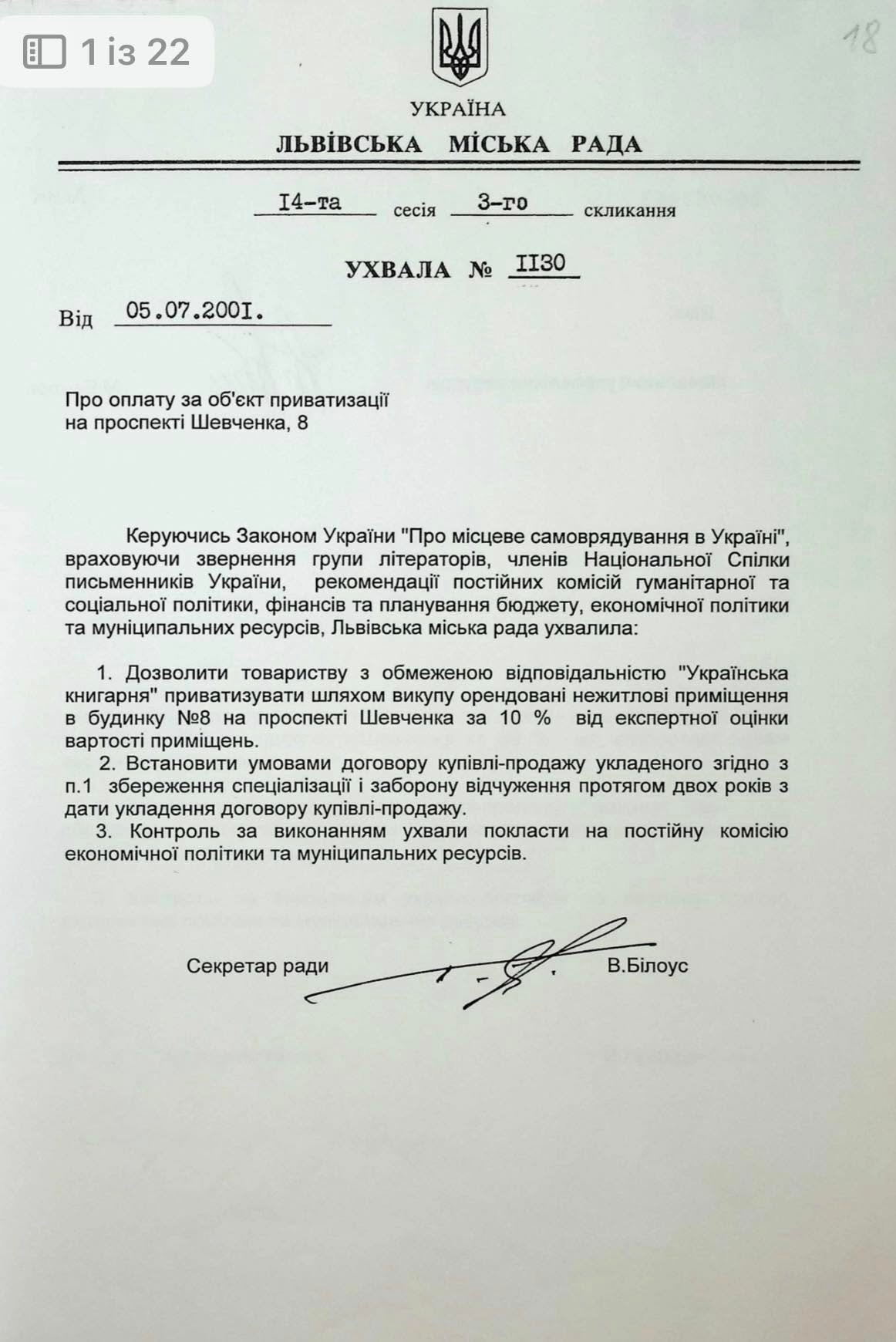 Документи, за якими книгарню передали в приватну власність. Фото ZAXID.NET