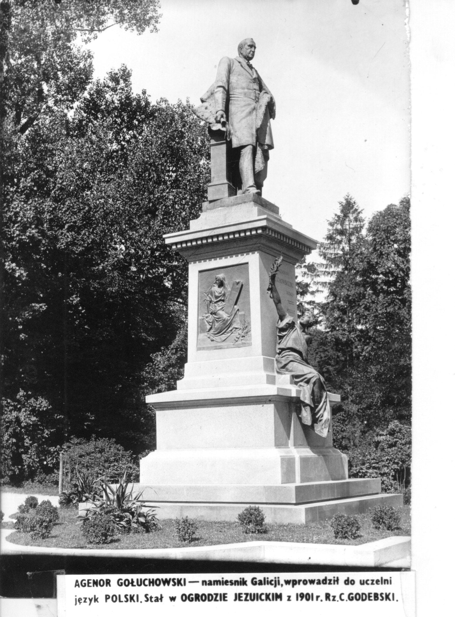 Нині на початку головної алеї парку імені Івана Франка стоїть чавунна ваза зі зображенням знаменитих «Алегорій життя» видатного данського скульптора XIX століття Бертеля Торвальдсена. А понад століття тому, з 1902 року на цьому місці стояв пам’ятник триразовому цісарському намісникові Галичини за часів Австро-Угорщини Аґенору Ґолуховському. Ґолуховський був одним із засновників Рільничої Академії в Дублянах і Львівської політехніки. Відомий своєю польською і антиукраїнською політикою, він запровадив у Галичині польську мову в урядових установах і судах.