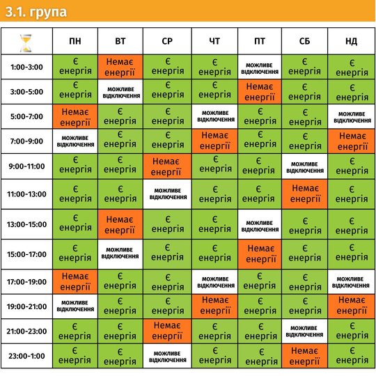 За оновленими графіками, споживачів поділили на шість груп, що відповідають чергам у графіку погодинних відключень – 1.1, 1.2, 2.1, 2.2, 3.1 і 3.2. Водночас зменшилась тривалість вимкнень, передбачена графіками. Переглянути графік кожної з груп можна на сайті «Львівобленерго» у розділі «Чому немає світла». Крім цього, про відключення інформуватимуть чат-боти компанії у Viber і Telegram.