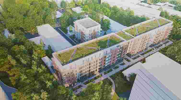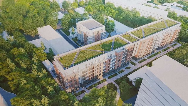 Згідно проекту будівництва, на ділянці площею 0,6 га зведуть два шестиповерхові будинки. Відомо, що в одному із будинків буде 140 квартир і на його даху облаштують зелені насадження. Скільки квартир буде в другому будинку, наразі невідомо.