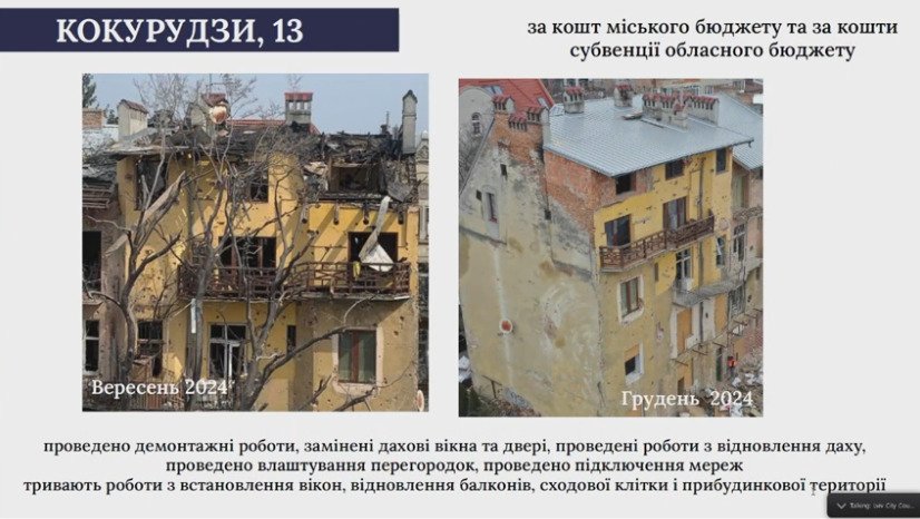 Львівська міськрада показала результати відновлення пошкоджених росіянами будинків