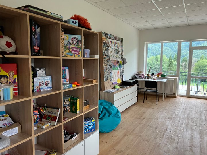 «Верхній поверх був з дерева, в жахливому стані. На поверхах не було санвузлів. Вхідна частина була розділена перегородками, тобто не було якогось одного загального простору. Тож, одне з перших завдань, яке ми перед собою ставили, – якісний вхідний простір, хол-фойє з рецепцією, щоб дітей класно зустрічали, щоб вони мали де разом проводити час. Це простір з великим пуфами і столиками, де в погану погоду діти можуть разом відпочивати, грати настільні ігри, тощо. Також на першому поверсі перед їдальнею ми додали рукомийники, бо це про функціонал – діти приходять з вулиці, миють руки і йдуть обідати. Також модернізували їдальню. Тепер звідси можна вийти на терасу, де в майбутньому також можна поставити столи, щоб діти харчувались на свіжому повітрі», – розповів начальник управління архітектури Роман Крушельницький.