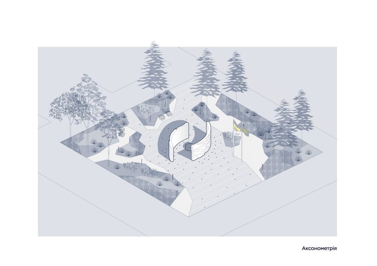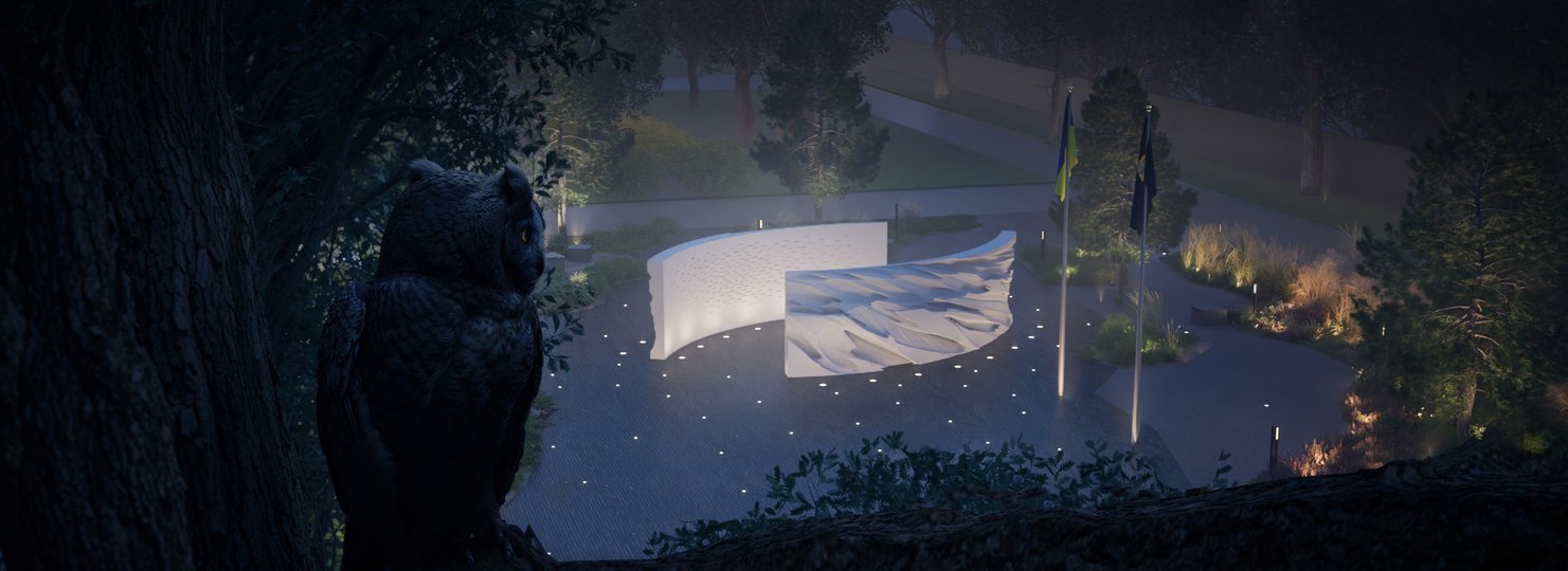 З висоти пташиного польоту композиція зі стел та центрального елемента нагадуватиме форму ока: символ вічної пильності, захисту, невидимої присутності. Меморіал стане простором, який також допоможе розповісти більше про героїв.